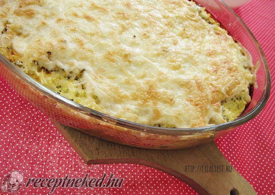 A tetejére ismét tejföl kerül, majd reszeljük rá a mozzarellát és 190-200 fokon addig süssük, amíg a sajt megpirul.