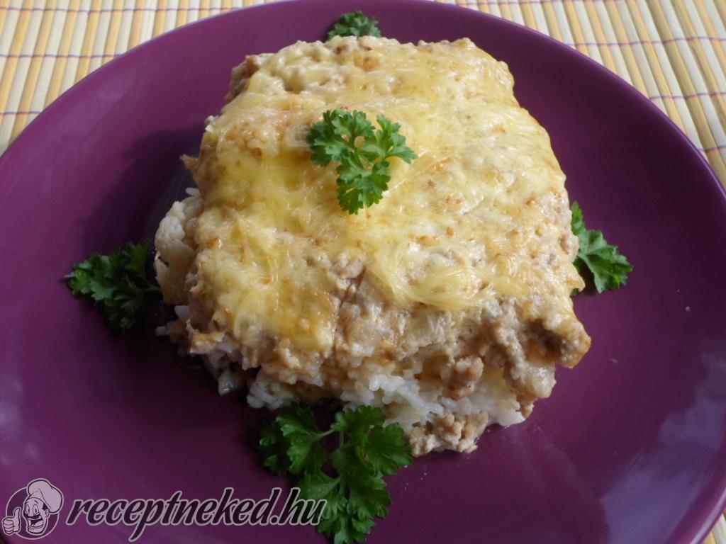 Reszelt füstölt sajttal megszórjuk, és 200 fokos sütőben készre sütjük.