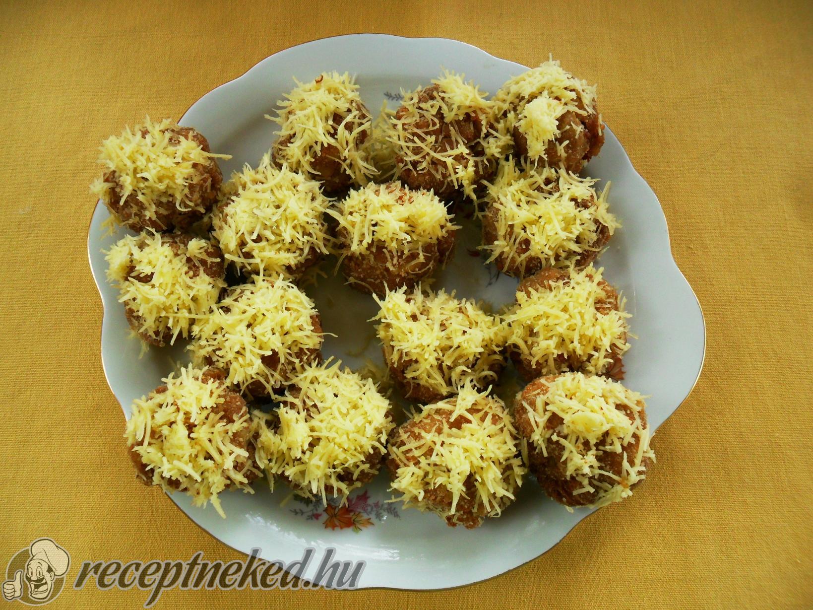 A darált húshoz adjuk a megdinsztelt hagymát, az összenyomkodott főtt burgonyát, a tojást, a zsemlemorzsát, és ízlés szerint a sót, borsot, valamint meghintjük pirospaprikával. Jól összedolgozzuk, majd kis golyókat formázunk belőle, zsemlemorzsában megforgatjuk.