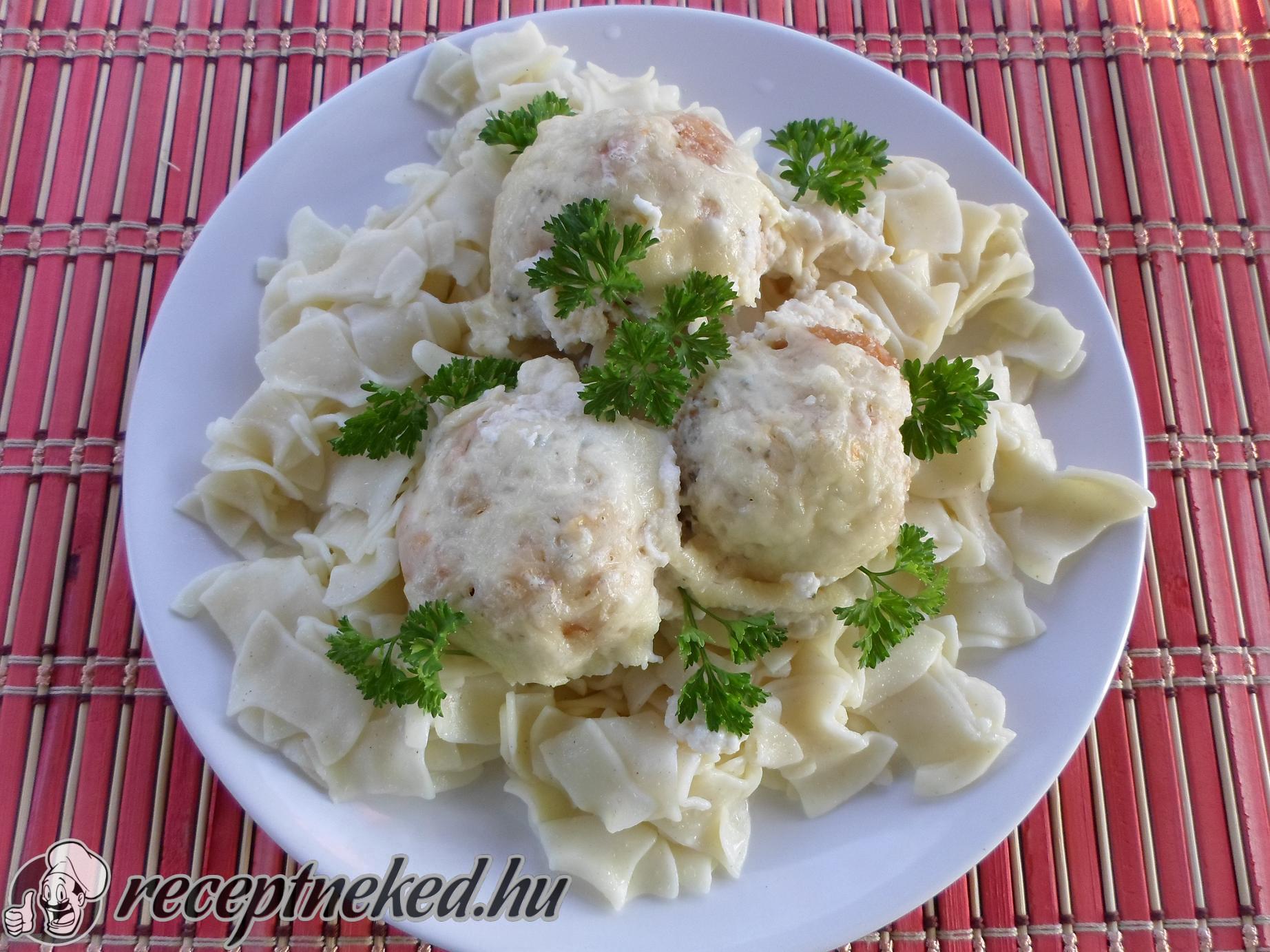 Egy közepes tepsit vajjal kikenjük, sajt szósz több mint a felét bele öntjük. Húspogácsákat, belepottyantjuk,végül a maradék sajtszószt ráöntjük, hogy teljesen ellepje.