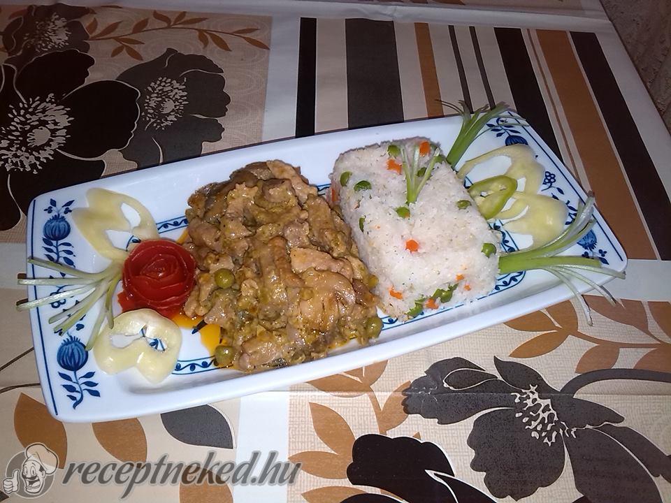 A gombát megpucolom és felszeletelem, az apróra vágott paradicsomot hozzáadom a húshoz, majd egymás után a gombát és a zöldborsót is. Sózom, fűszerezem borssal, köménnyel és bőven majoránnával. Lefedem, hagyom párolódni, ha kevés leve lenne, pici vizet adok hozzá.