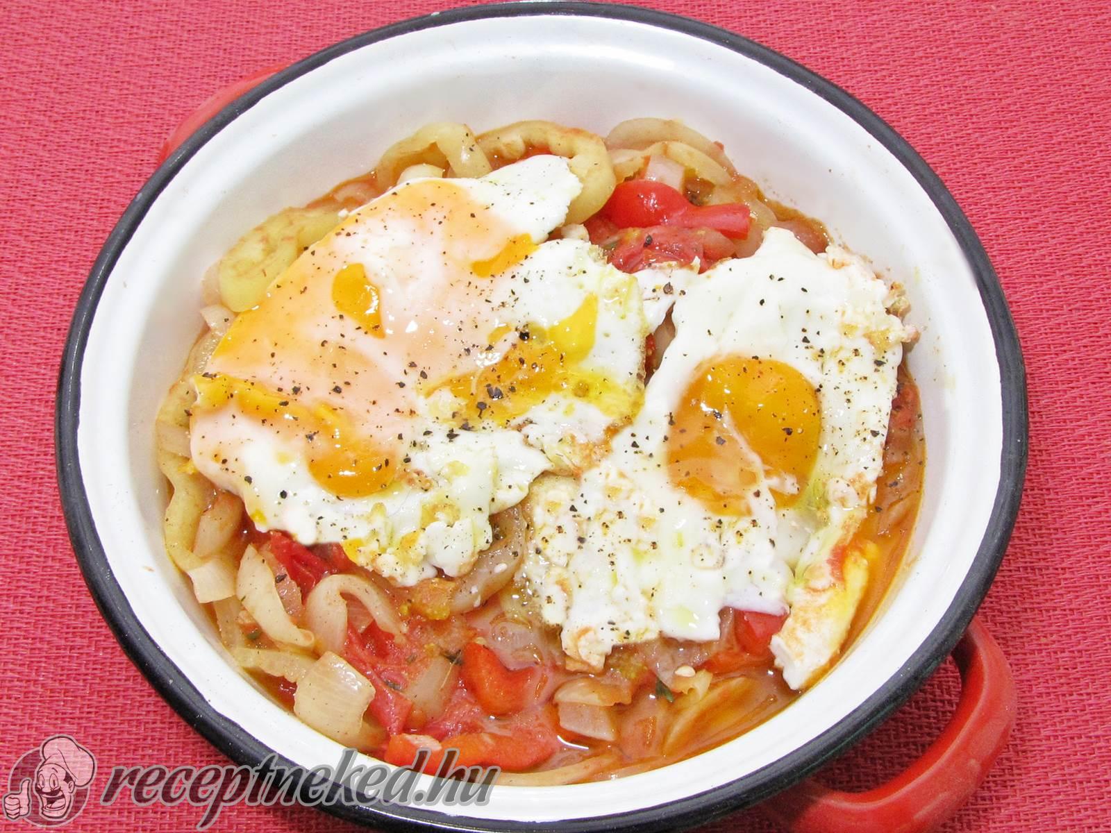 Készíthetjük úgy lecsónkat, hogy az elkészült étel tetejére buggyantjuk a tojásokat, vagy ha valaki fél a szalmonella fertőzéstől, előre elkészített tükörtojásokkal tálalhatja a saksukát.