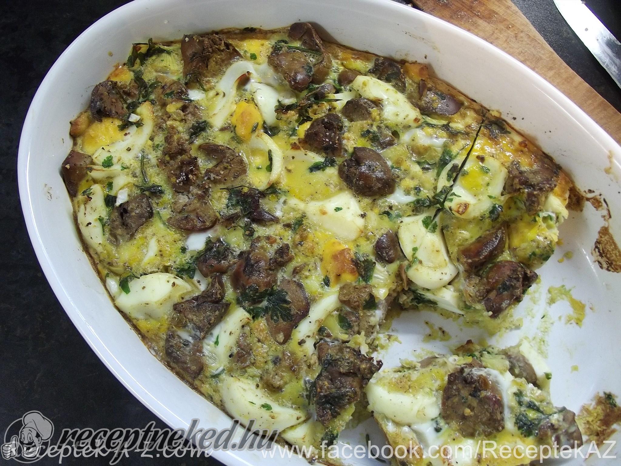 Olajozott sütőtálba előmelegített sütőben kb. 30 perc alatt készre sütjük. Kenyérrel kínáljuk.