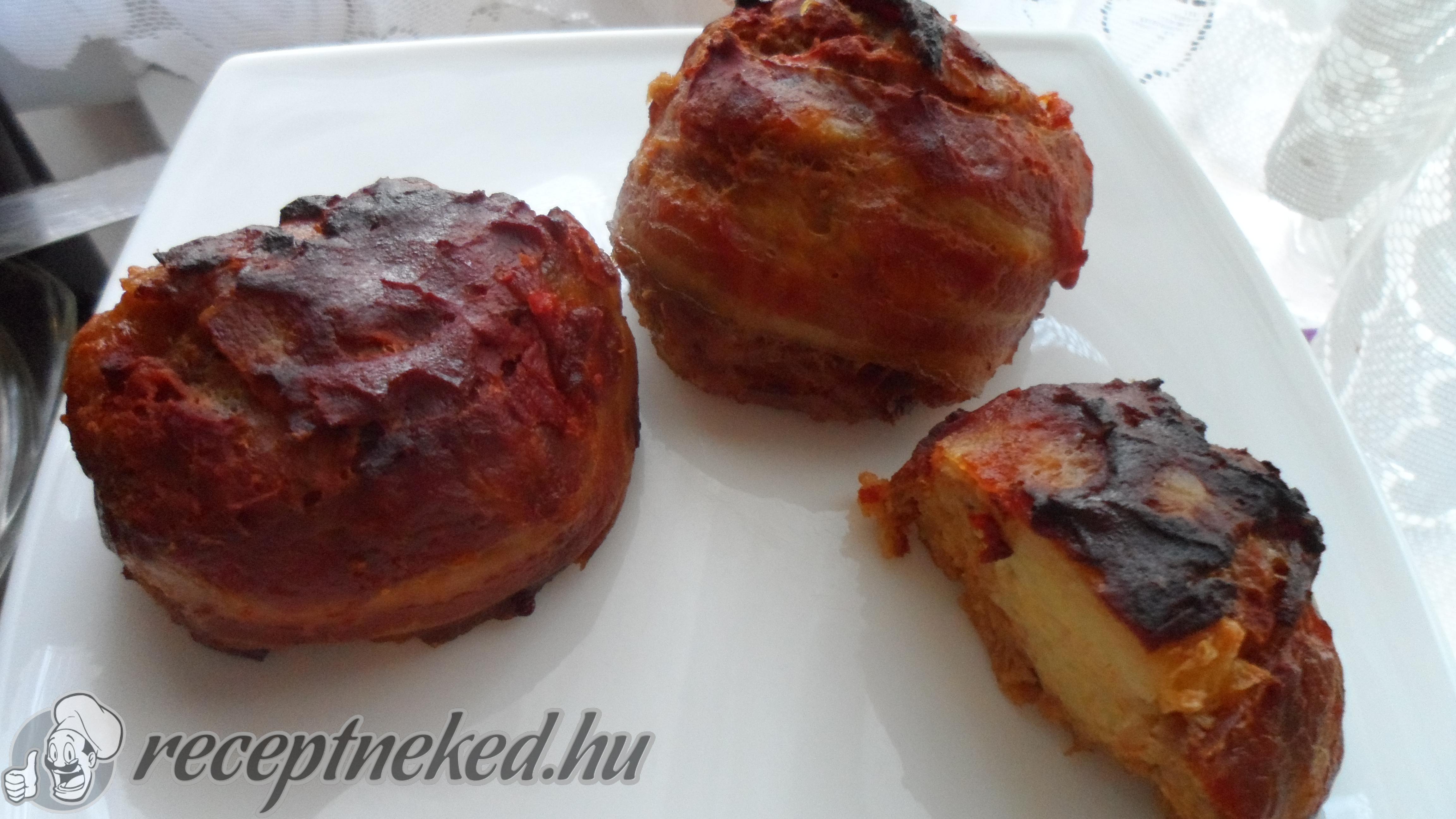 Én a fasírtgolyókat muffin papírba tettem, melyet kevés zsiradékkal kentem be, hogy ne ragadjon a baconhoz.[/box]