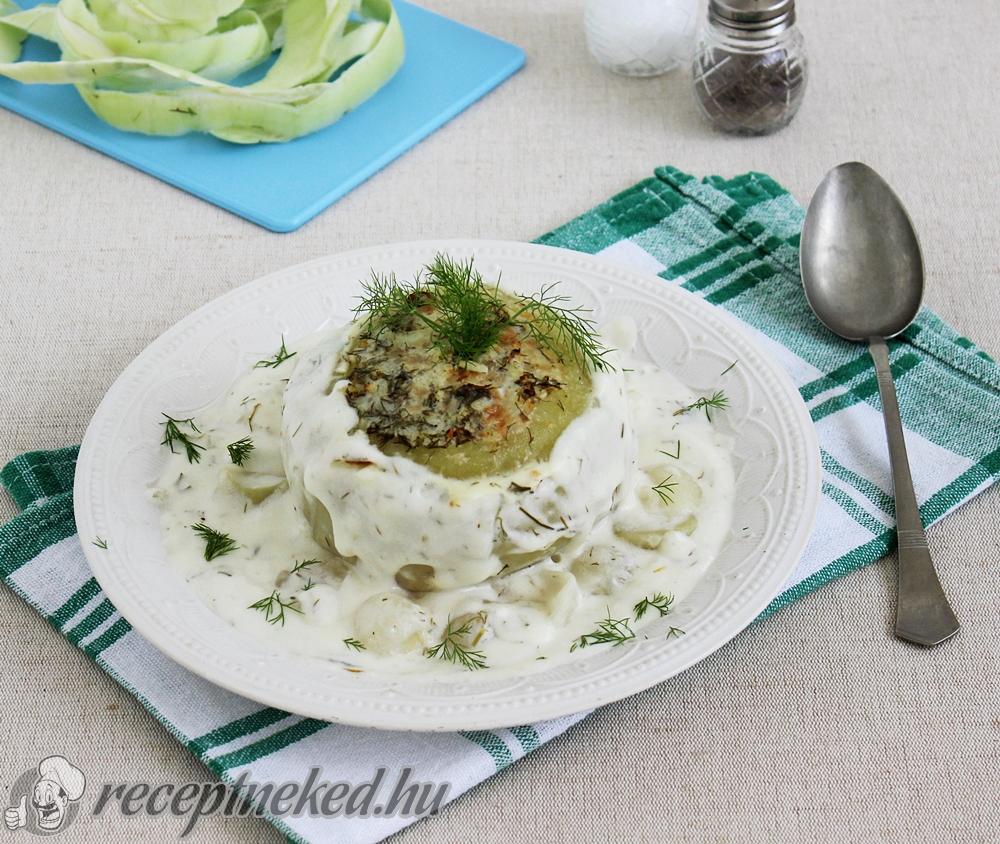 Ízlés szerint sózzuk, ízesítsük ételízesítővel a főzőlevet, adjuk hozzá az apróra vágott kaprot, majd főzzük puhára a megtöltött karalábét. (ha maradt a húsból, akkor formázzunk kisebb gombócokat, és szintén tegyük az edénybe)