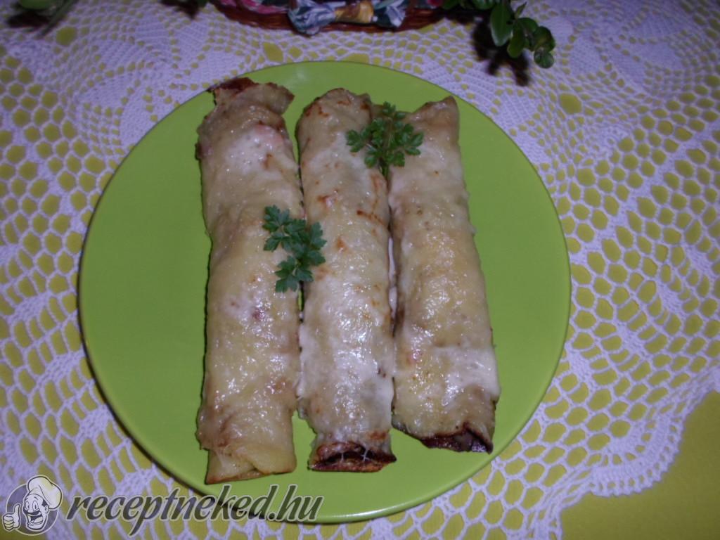 Tetejét megszórjuk reszelt sajttal és kb 15 percig sütjük.