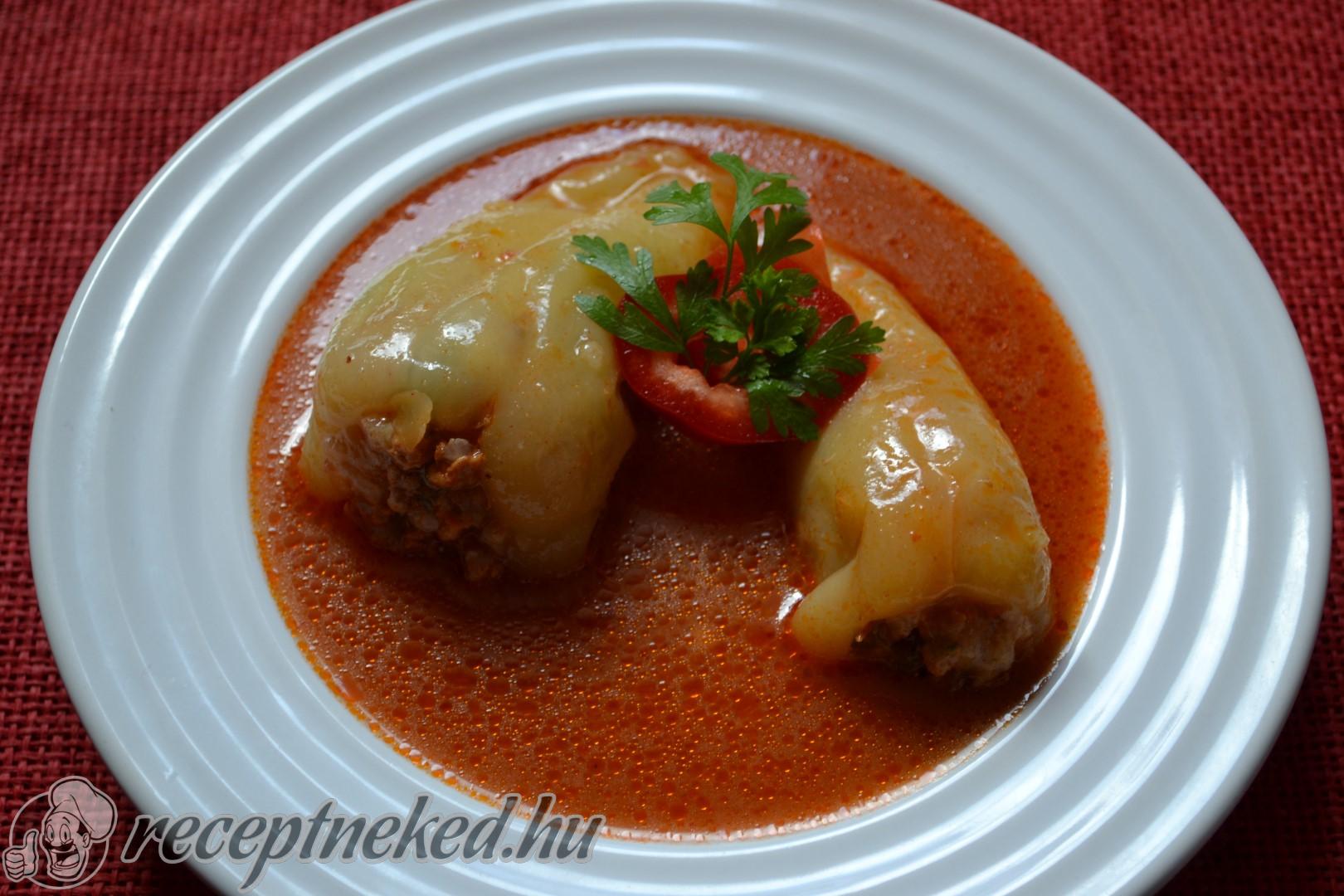 A rizst mossuk meg, adjuk a darált húshoz, és kevés sóval, pirospaprikával, borssal és aprított petrezselyemzölddel gyúrjuk jól össze. Töltsük bele a kimagozott paprikákba, és a végét kicsit lisztezzük be.