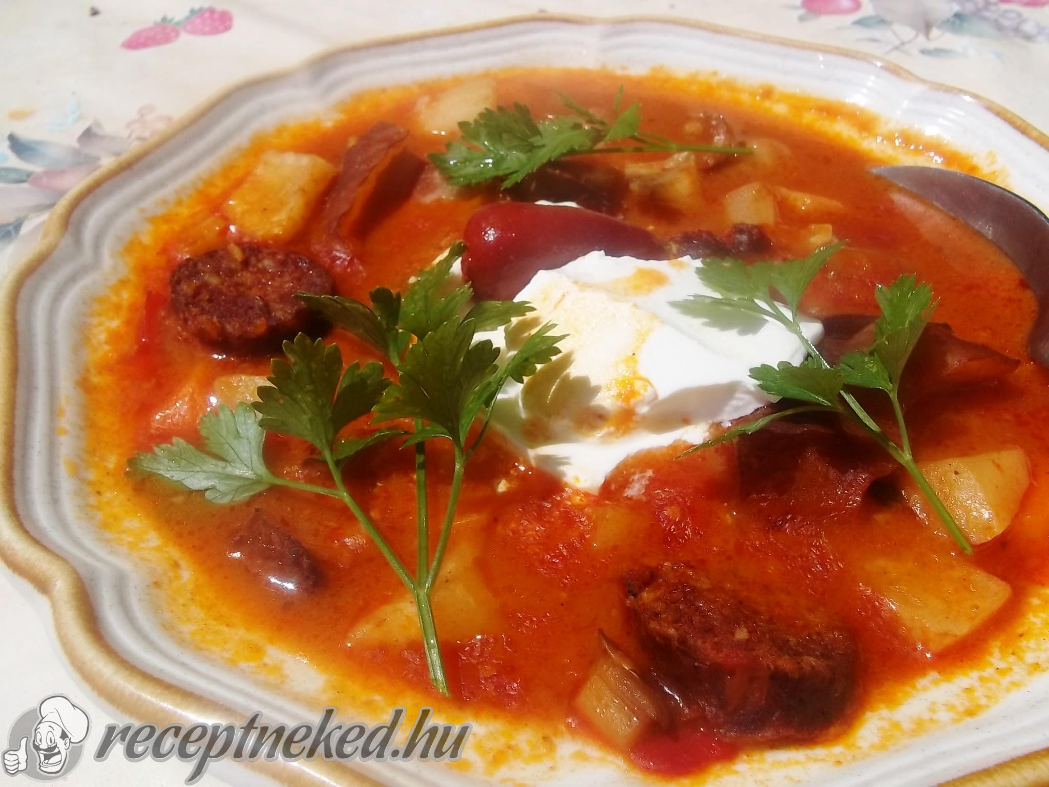 [box style=”info”]Bár ez inkább téli étel, megkívántam. Ehhez az időjárás is besegített, a kánikula után jelentűsen leesett a hőmérséklet. Aki akarja, még csipetkével is gazdagíthatja, s akkor egy nagyon tartalmas egytálételt kap. De csipetke nélkül is elég gazdag lett a leves.[/box]