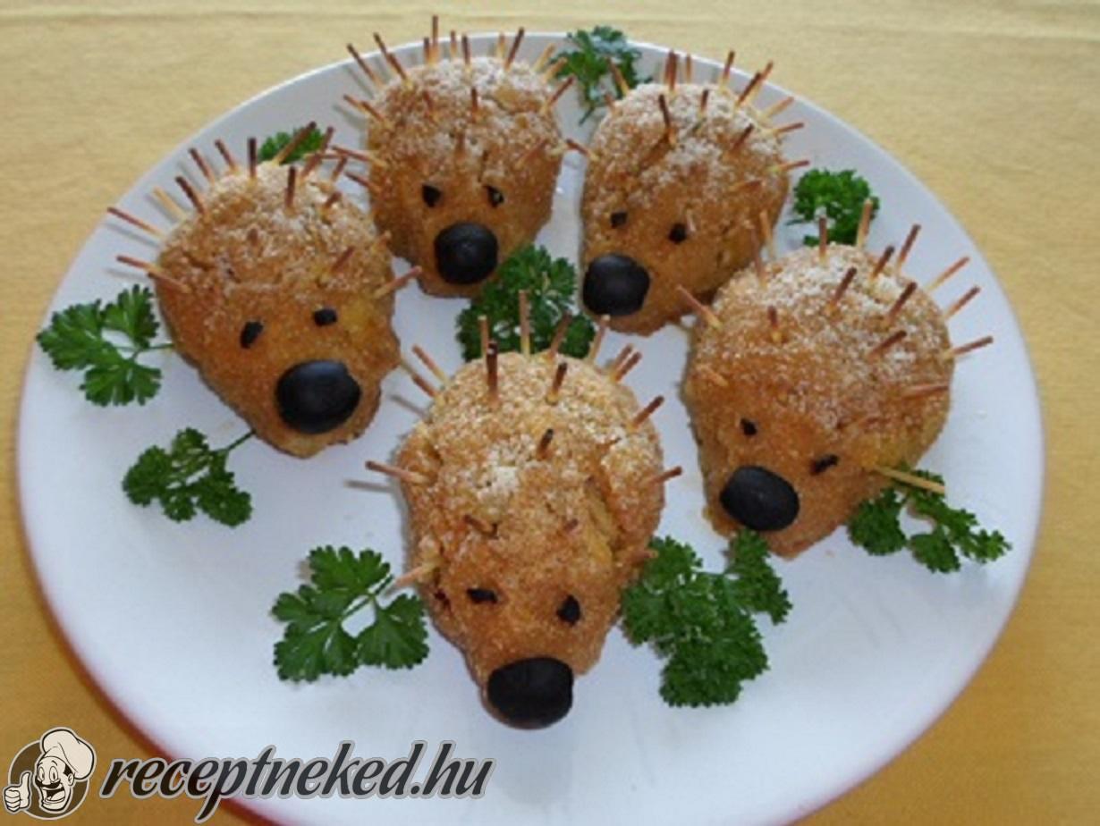 Olajjal kikent tepsibe helyezzük őket. A spagettit 2 cm hosszúságúra daraboljuk és telebökdössük a süni hátát, majd készre sütjük.