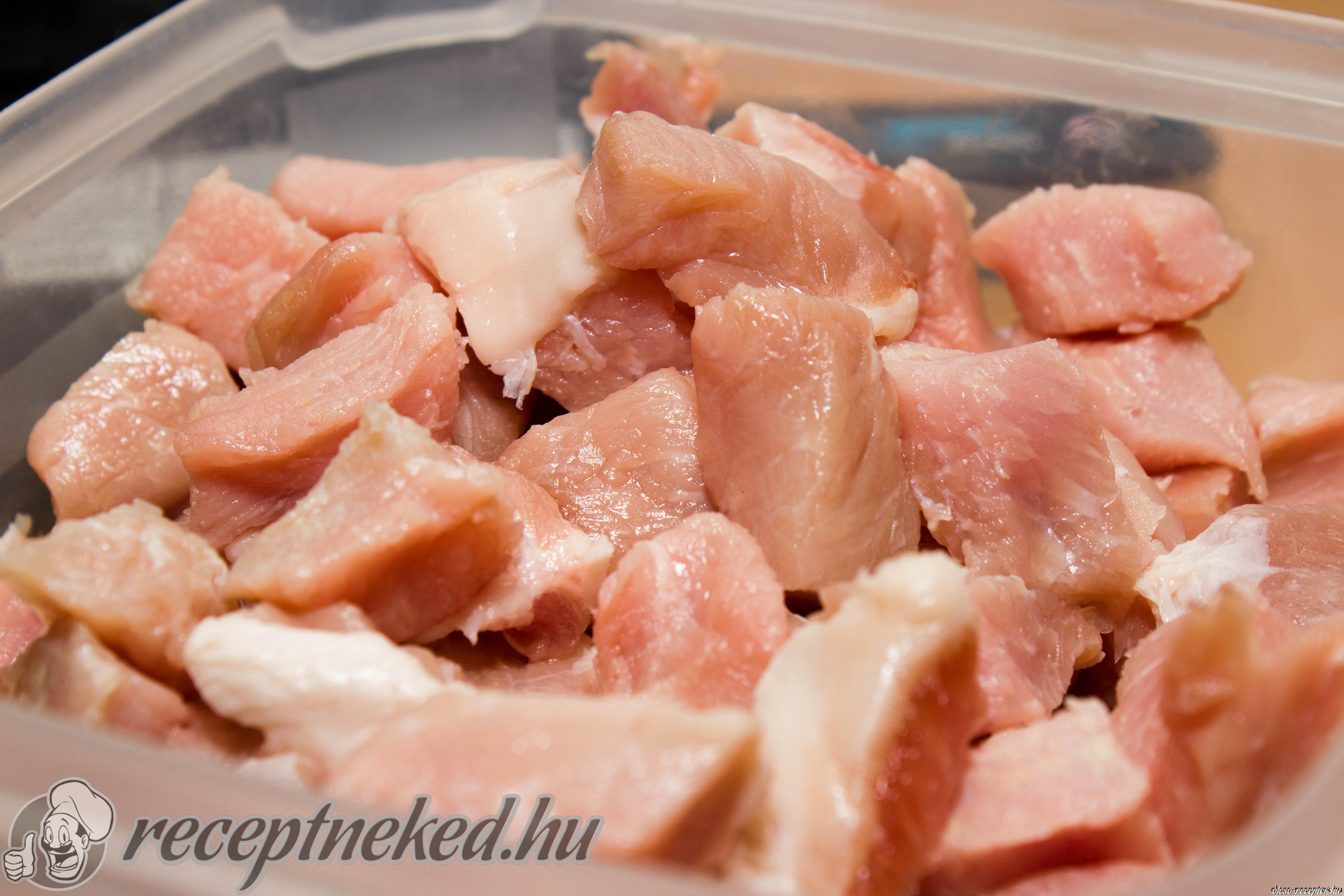 A hagymát olajon üvegesre pároljuk, rádobjuk a felkockázott húst, fűszerezzük, vízzel felengedjük, és fél puhára pároljuk. Ha félig megpuhult beletesszük a babot, és készre főzzük. Forrón, tejföllel tálaljuk.