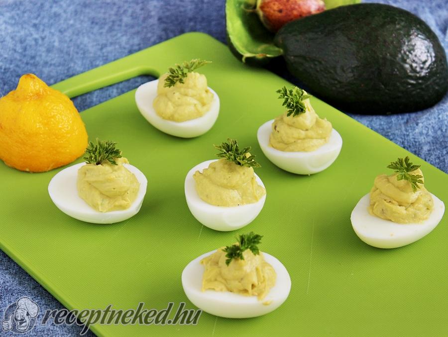 Az elkészült avokádókrémmel ezután töltsük meg a visszamaradt tojásfehérjéket, majd rögtön tálaljuk is. (amennyiben még nem tálaljuk, akkor fóliával lefedve tegyük be a hűtőbe tálalásig)
