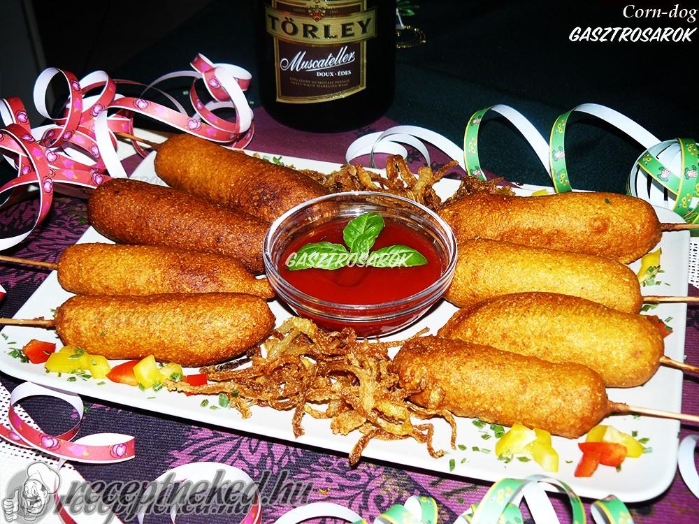 A hozzávalókat palacsinta szerű masszává keverjük, ízlés szerint fűszerezzük. A masszát kitöltjük egy hosszú pohárba. A virsliket felszúrjuk, belisztezzük, majd belemártjuk a masszába.