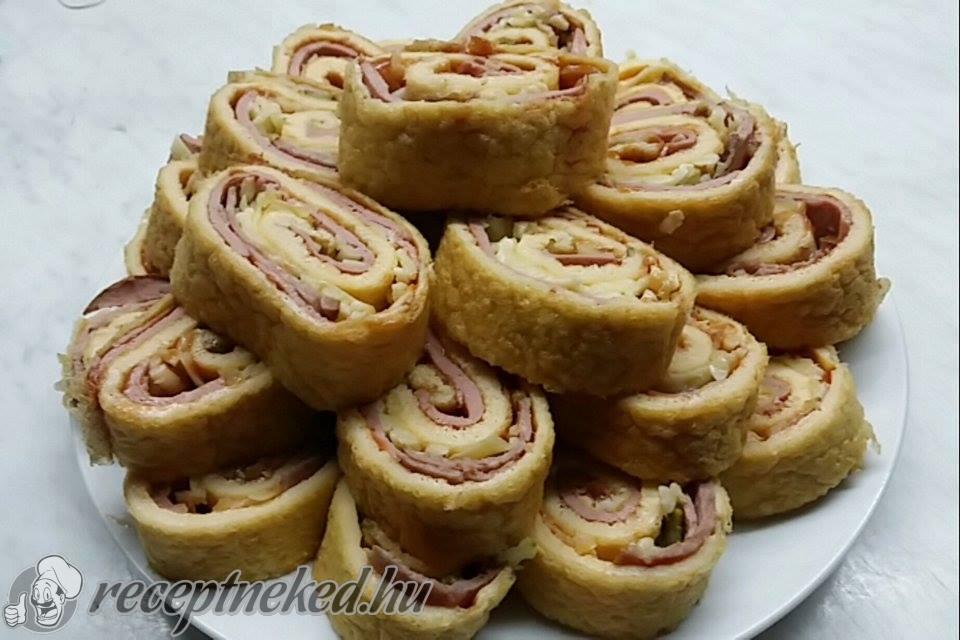 A tojáslapot a felső felére borítjuk, és még melegen rátesszük a 2 evőkanál tejfölt, ketchupot, a savanyú uborkát és a a reszelt sajtot. Szorosan feltekerjük.