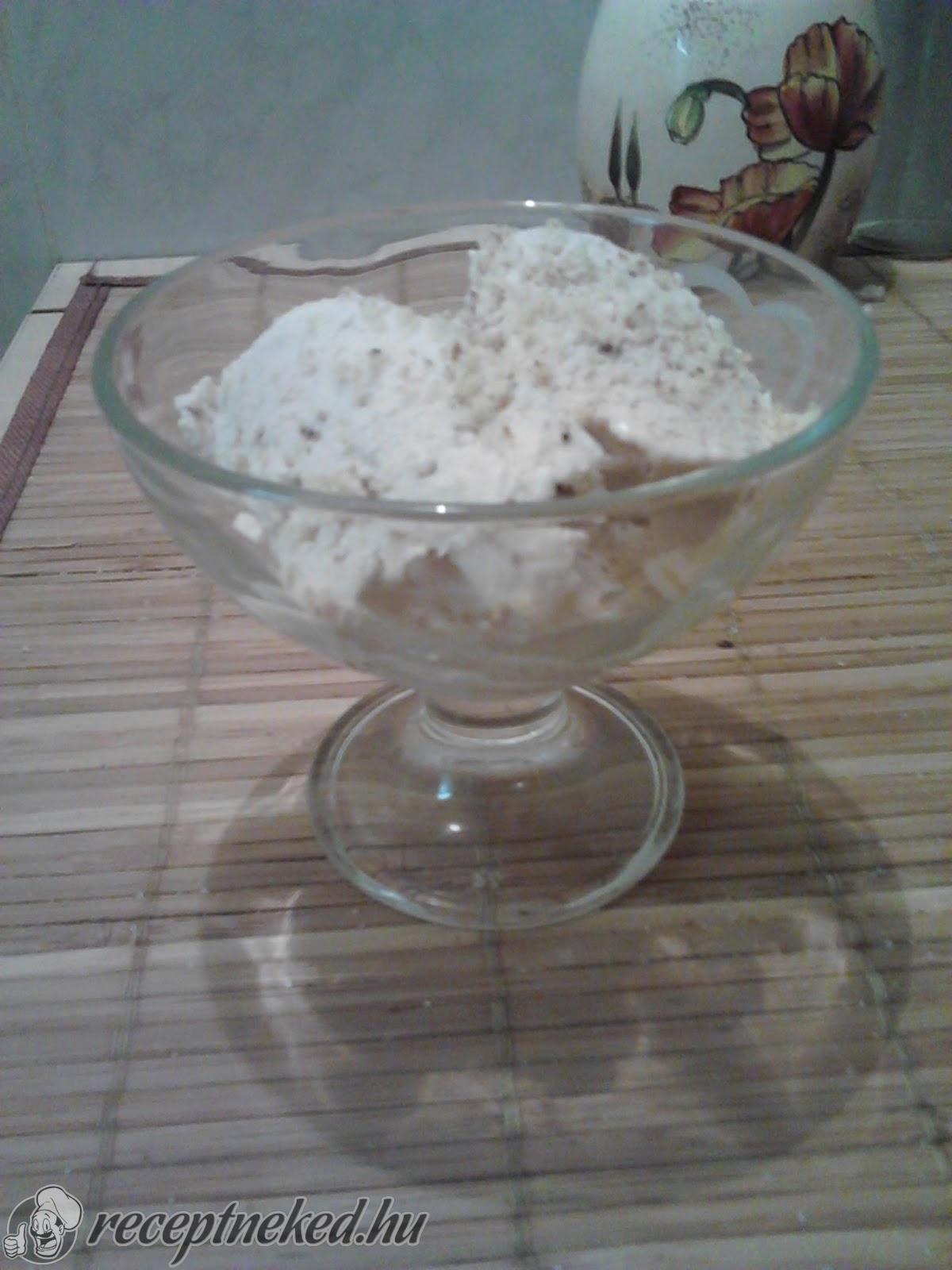 Ha nincs fagyi gépünk, akkor egy tálba tesszük a hozzávalókat, alaposan elkeverjük, majd betesszük a fagyasztóba. Fél óránként megkeverjük, majd ha elkészült tálaljuk.