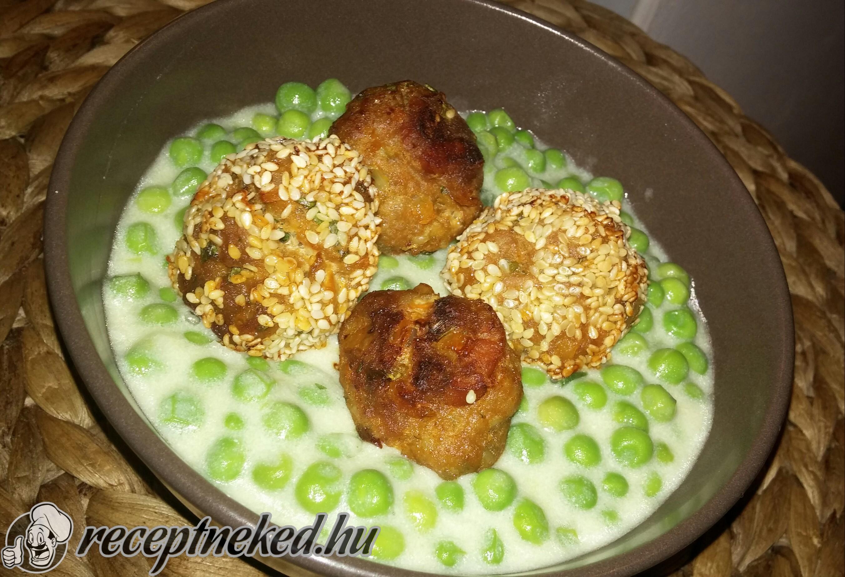 Diónyi nagyságú golyókat formázok belőle és meghempergetem szezámmagban vagy kukorica darában és sütőpapírral bélelt tepsibe teszem. 15-20 perc alatt készre sütöm, úgy hogy félidőben megforgatom őket! Én úgy szoktam készíteni, hogy felét hempergetem, felét nem, szerintem így mutatósabb.