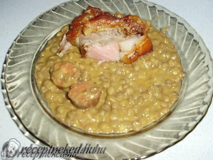 Ha a lencse puhára főtt, hagymás-paprikás rántást készítünk és besűrítjük vele. Kevés ecettel ízesíthetjük.