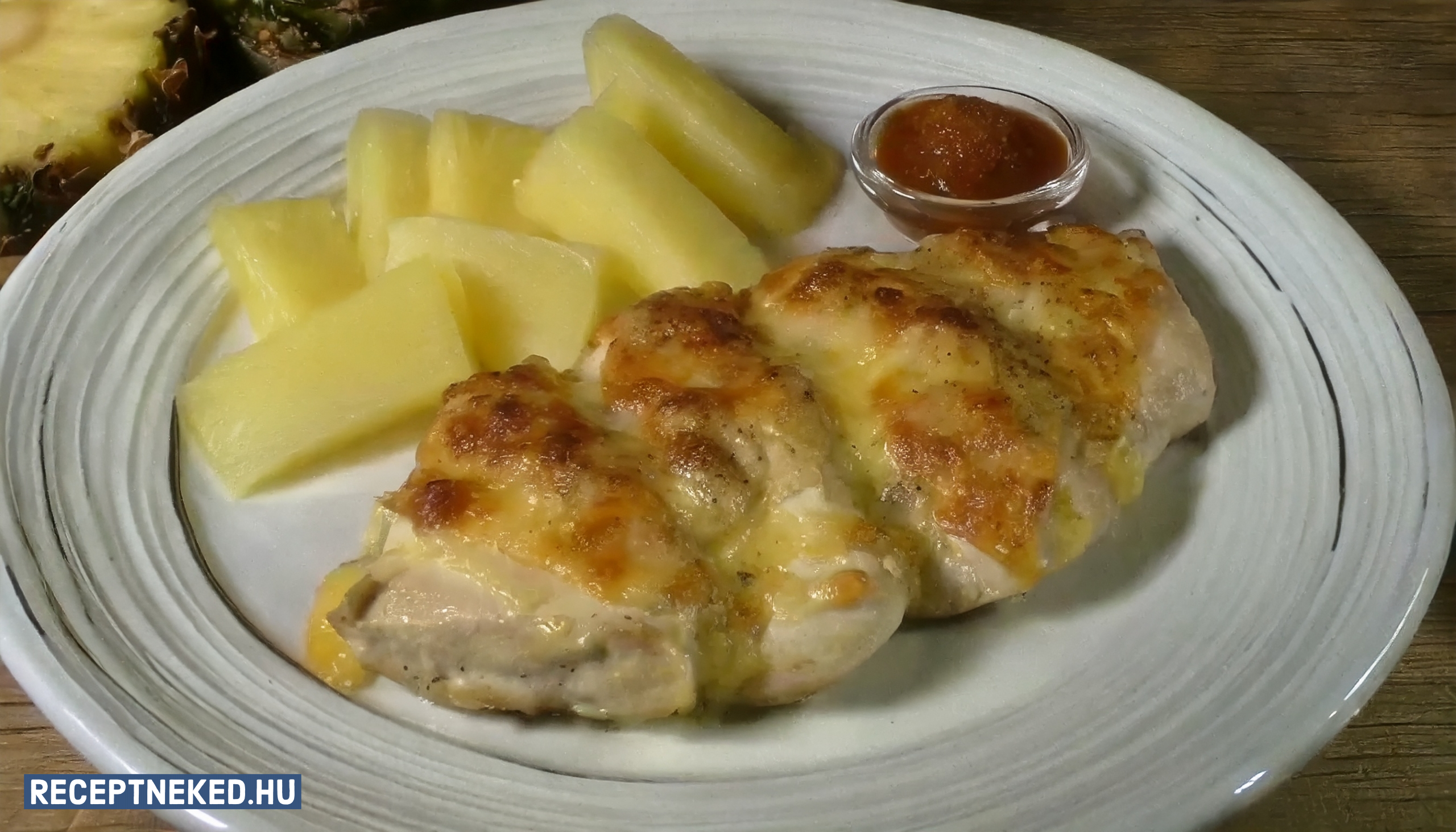 A csirkemellet 4 szeletre vágom. Egy üvegtál aljára pici olajat teszek, majd elhelyezem benne a húst és befűszerezem. A húsokra 1-1 szelet sonkát teszek, jól megkenem tejföllel, ananászt teszek rá, majd reszelek rá bőven sajtot. Lefedem alufóliával és így sütöm 180 fokon kb 15 percig, majd fólia nélkül addig, amíg a sajt megpirul. Olívabogyóval és […]