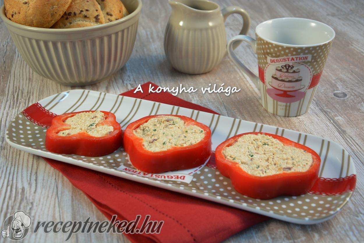 A megtisztított kicsumázott paprikába töltjük és egy éjszakára a hőben kihűtjük hogy az ízek érjenek össze.