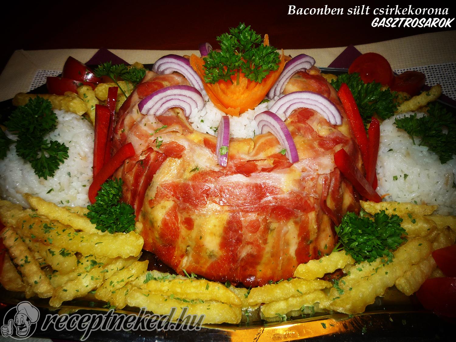 Én a baguetteket alaposan megkentem sajtkrémmel, megpakoltam sajttal és sonkával. Végül szeletelt baconbe tekertem és 180 fokra előmelegített sütőben 15-20 perc alatt megsütöttem.