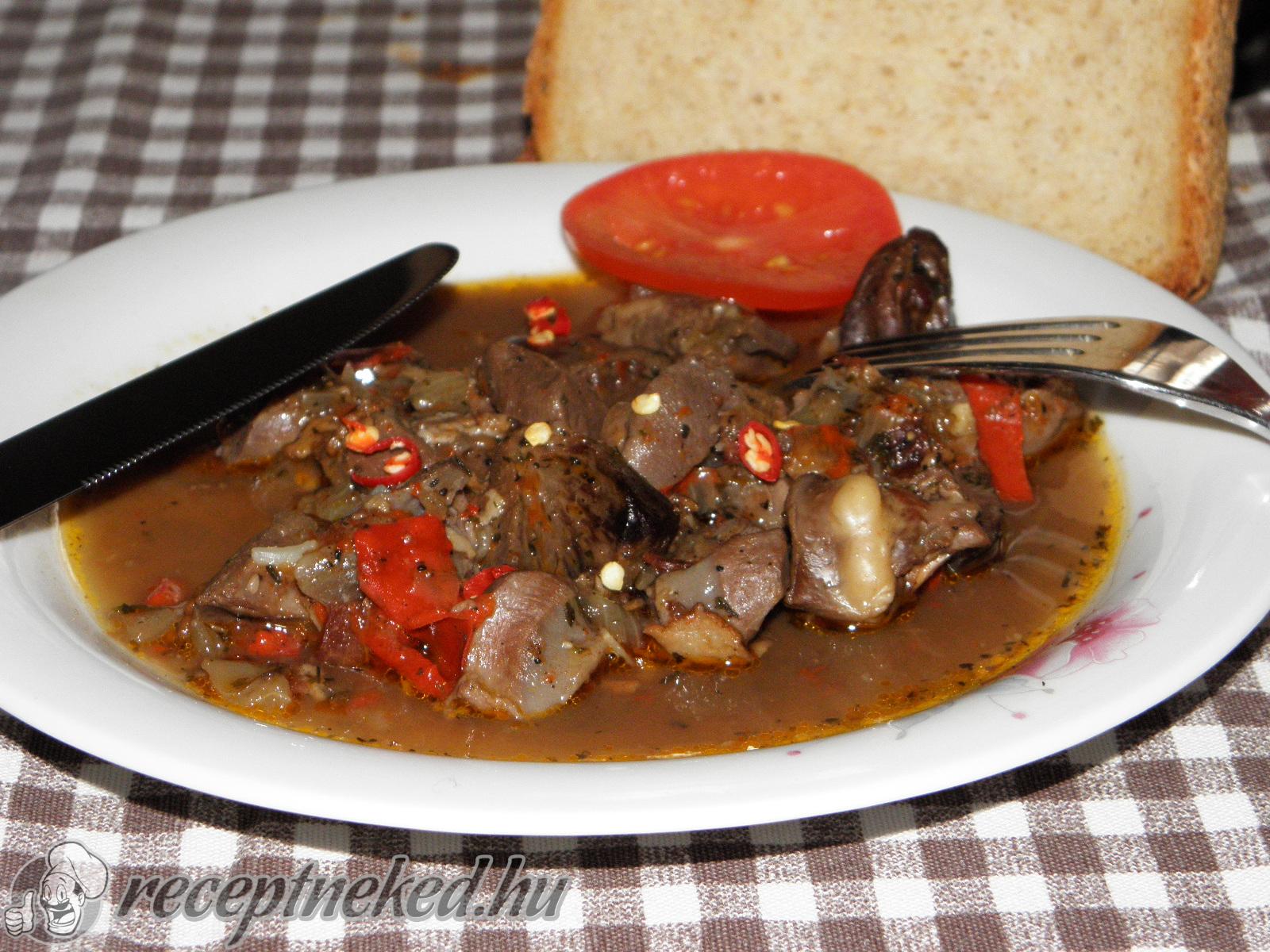 Ezzel egyidőben hozzáadjuk a kés élével erősen megnyomott, majd apróra vágott fokhagymát és a szintén felvágott petrezselyemzöldet. Kb 1, de legfeljebb 2 percig a tűzön hagyjuk (addig amíg a fokhagymának nem érződik a finom illata). Ezt követően félrehúzzuk a tűzről, hogy a serpenyő kicsit kihűljön.