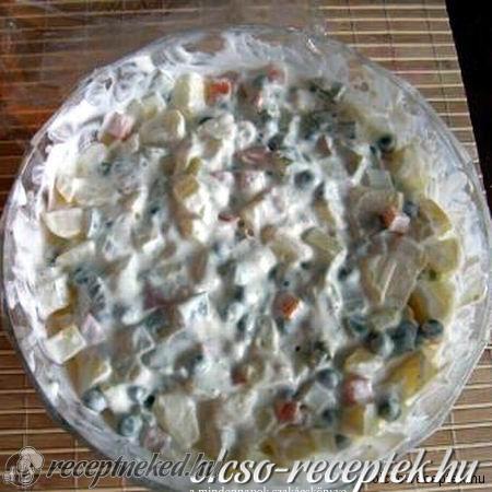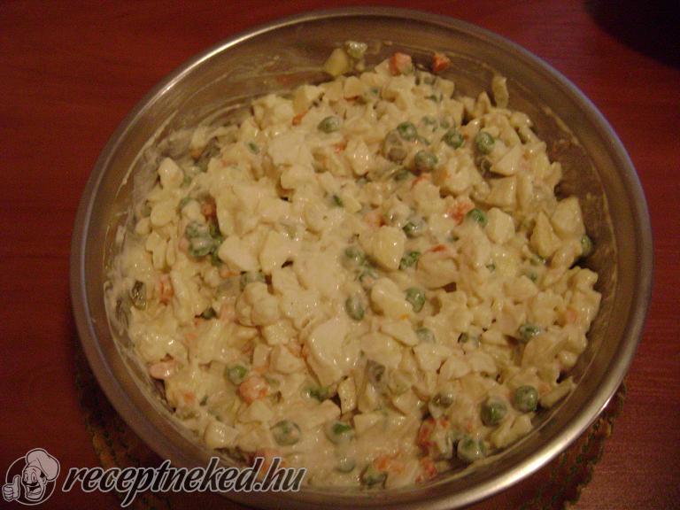 Kikavarjuk a mustárt az olajjal, beletesszük a zöldségeket és fűszerezzük.