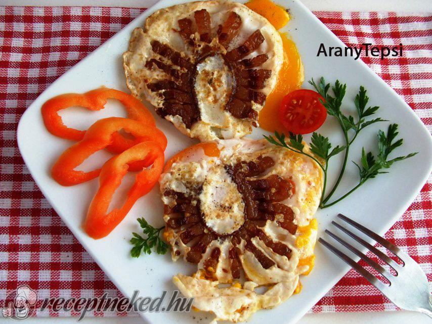 Amíg a gomba párolódik egy teflon serpenyőben megpirítjuk a vékonyra szeletelt bacont.