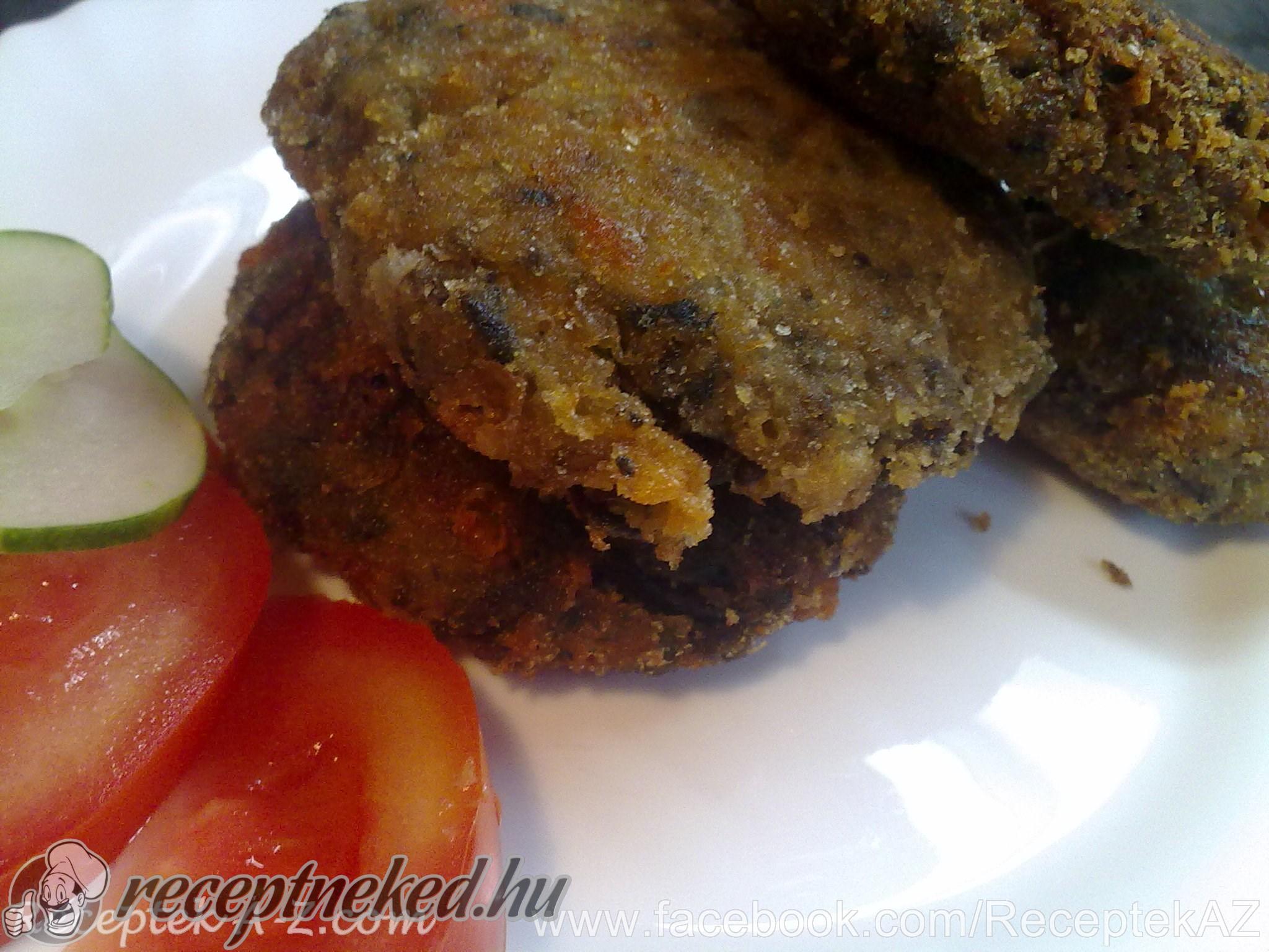 A masszából vizes kézzel fasírtokat formázunk, beleforgatjuk a zsemlemorzsába, majd forró olajban kisütjük.