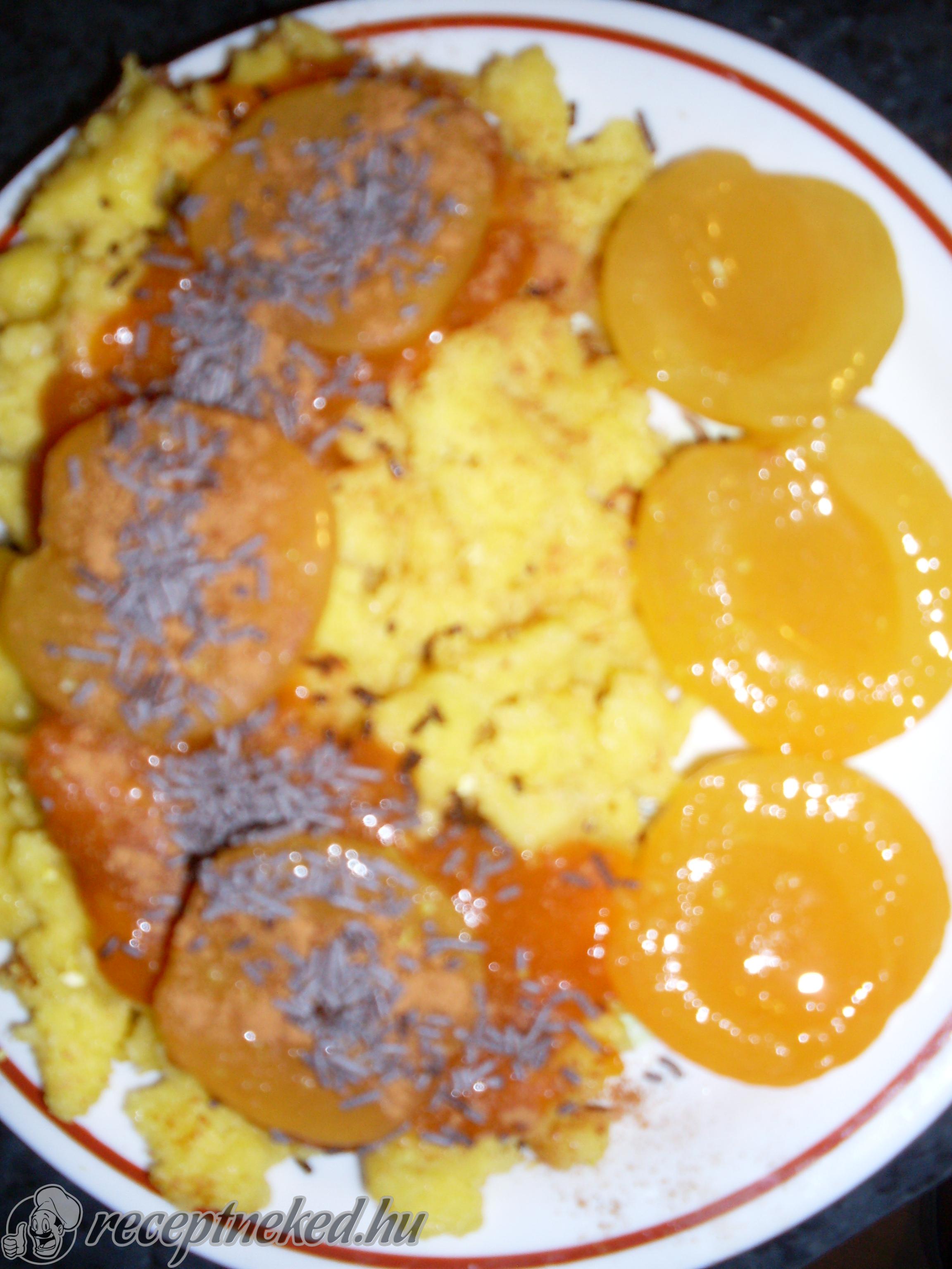 Egy serpenyőben felmelegítjük az olajat, és ráöntjük a búzadarás keveréket. Közepes lángon időnként megkeverjük, hogy morzsás állagúra essen szét. Ha elkészült, barackbefőttel és baracklekvárral tálaljuk. A barackokat megszórhatjuk fahéjjal, és díszítésként csokidarával is ízesíthetjük. Aki édesebben szereti, porcukrot is szórhat rá.