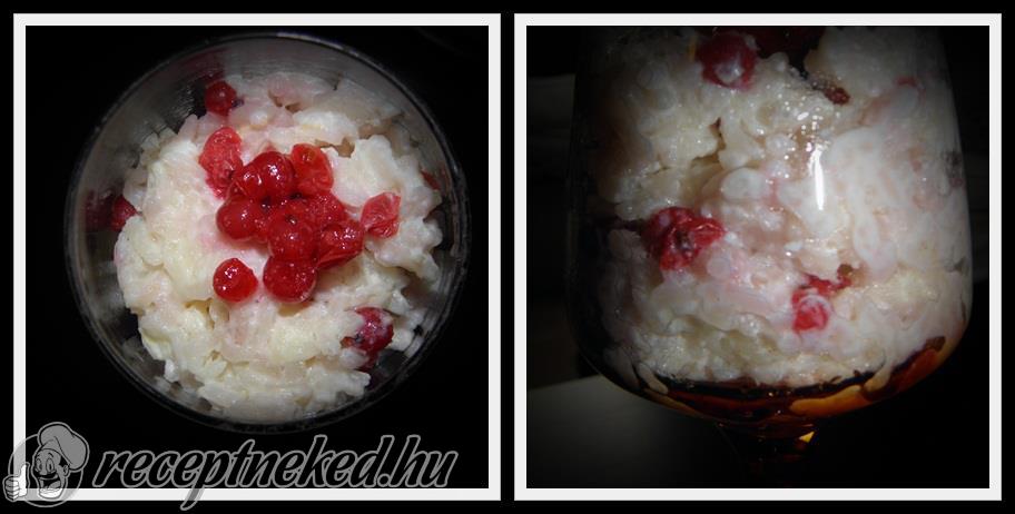 A tejet, a rizst, a cukrot, a vaníliát és a csipet sót lábosba tesszük, majd felforraljuk. Lassú tűzön, időnként átkeverve addig főzzük, amíg a rizs teljesen magába nem szívja a tejet és puhára nem fő.