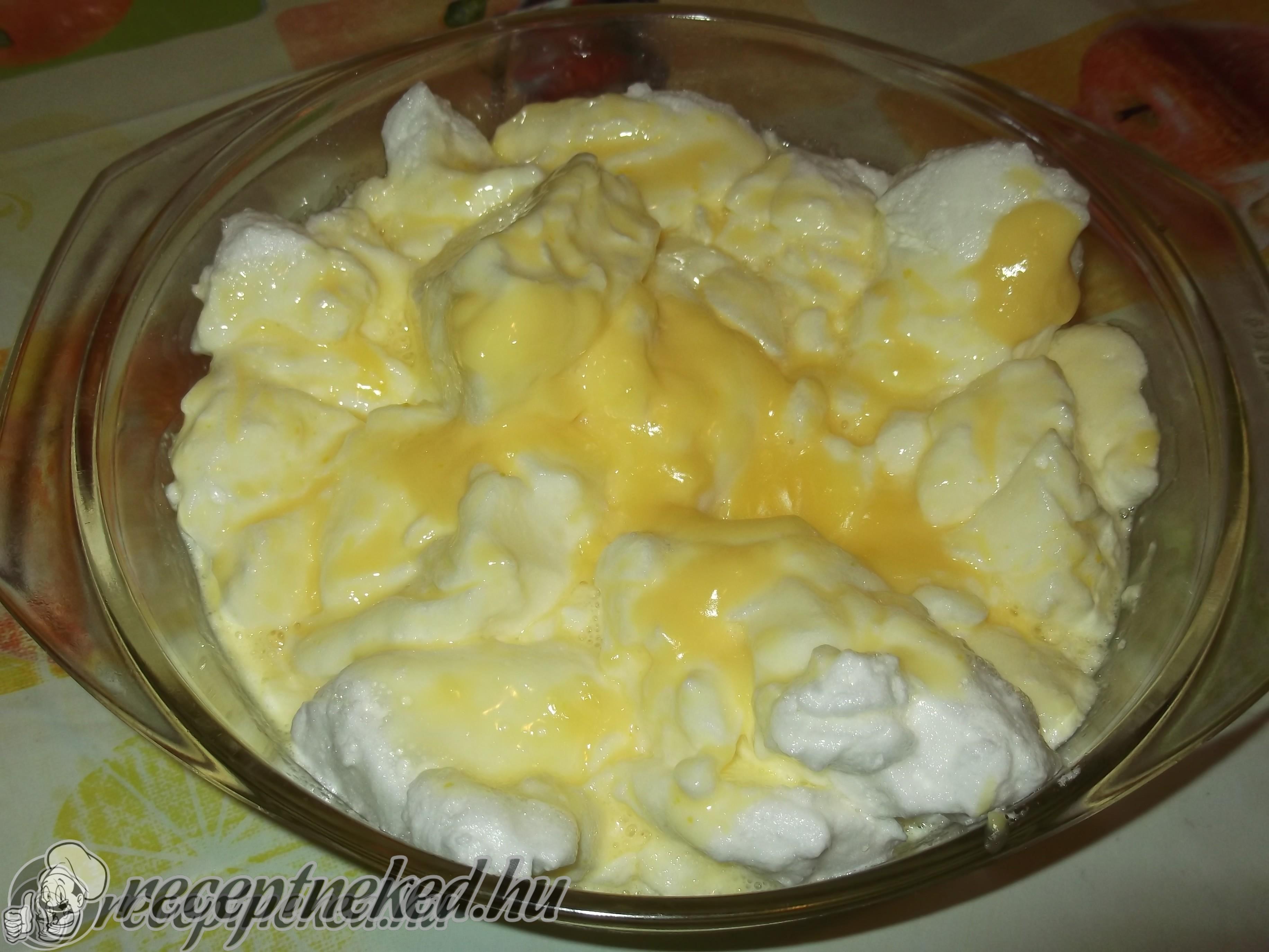 A tojássárgákat a másik csipet sóval felverjük és közben a cukrot hozzáadjuk. Amikor már habos, hozzáadunk egy keveset a langyosra hűlt tejből és elkeverjük. Hozzáadjuk a maradék tejet is és jól elkeverjük. Visszaöntjük az egészet a tejes fazékba és addig főzzük, amíg be nem sűrűsödik. Ha elkészült, kihütjük tálalásig hűtőben tartjuk.