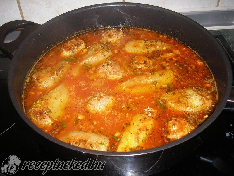 Hűtőszekrényben tartjuk 1-2 órán át, hogy az ízek összeérjenek. Félbevágott pritamin paprikában és pirítóssal tálaljuk.