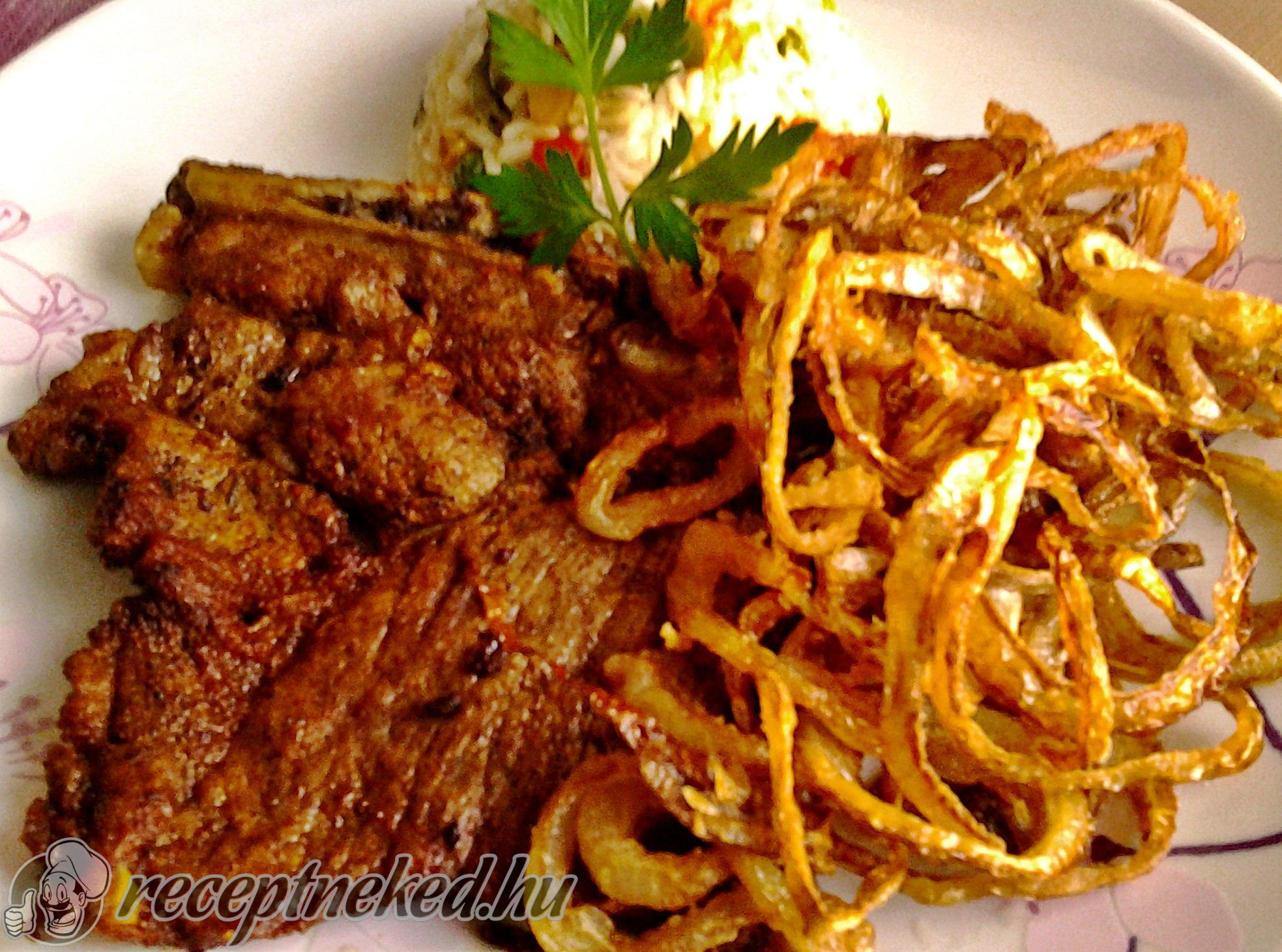 Közben az olajon megpirítjuk a karikára vágott virsliket, majd az olajból kiszedjük.