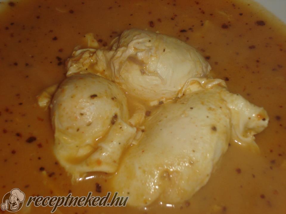 Világos rántás készítünk az olajból és a lisztből, majd belekeverjük a finomra vágott hagymát, babérleveleket, sót, cukrot, ecetet ízlés szerint, fűszerpaprikát, majd vízzel felöntjük és összeforraljuk. Végül a tejfölt is belekeverjük és egyet forralunk rajta.