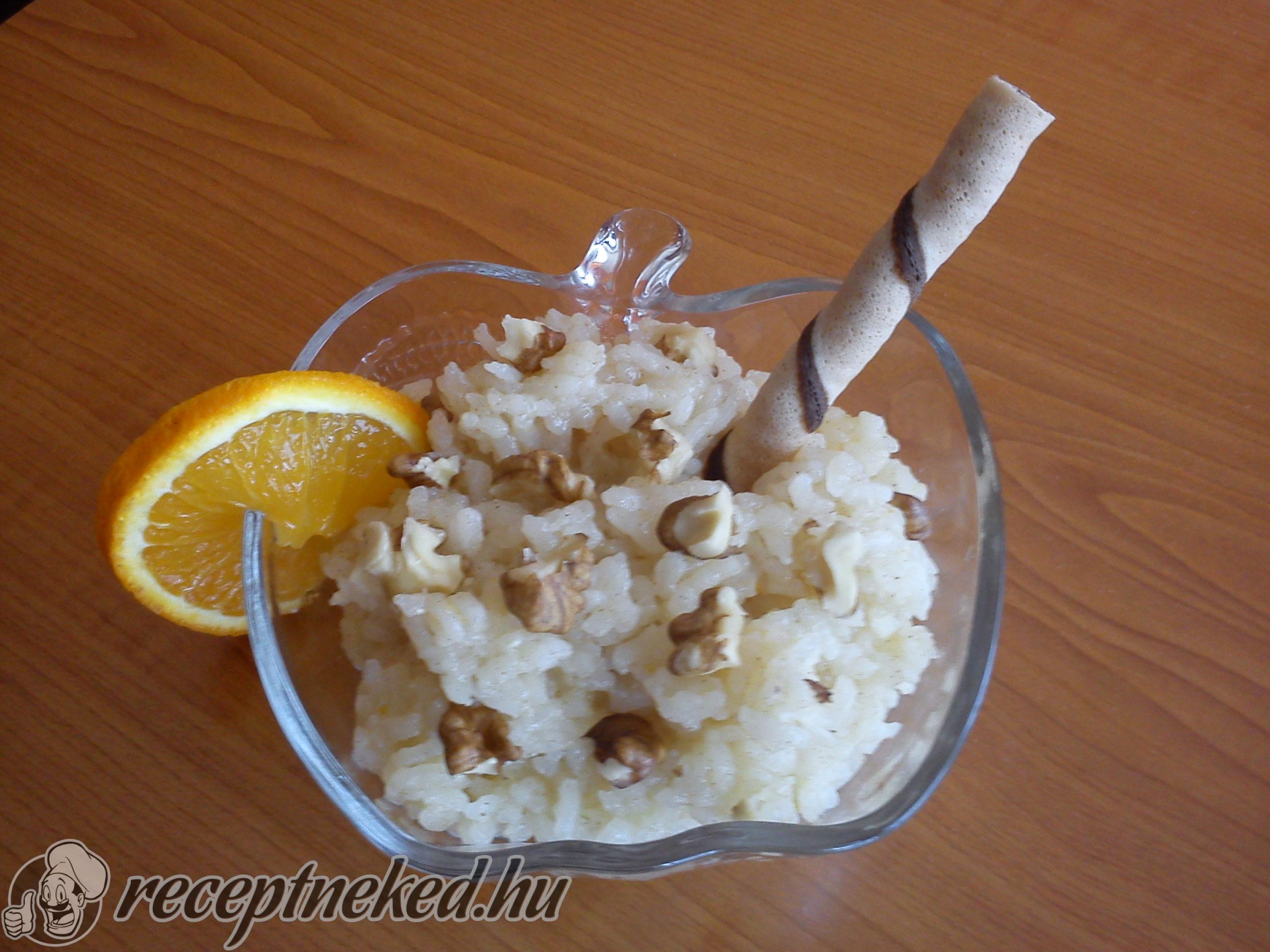 A rizst átválogatjuk, megmossuk, majd forrásban lévő vízbe tesszük és kb 15 percig főzzük, majd leszűrjük. A narancslevet a tejjel összeborítjuk, majd hozzáadjuk a cukrot és a fűszerekkel és lassú tűzön ebben főzzük tovább a rizst, egészen addig, amíg a levet magába szívja.