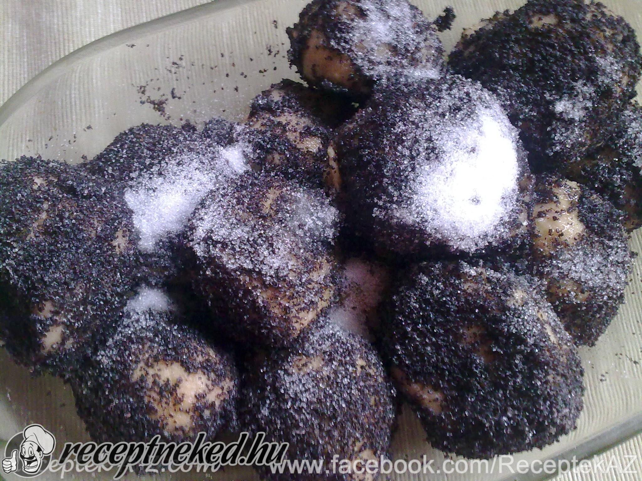 Szűrőkanállal kiszedjük és lecsepegtetjük, majd darált mákkal és édesítővel kínáljuk.