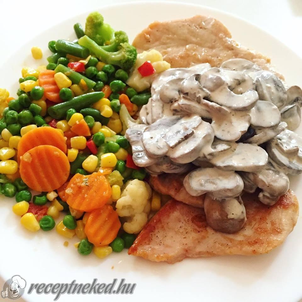 A hússzeletet a mártásba visszatesszük és tovább pároljuk. Közben a mártást megkóstoljuk és ha kell még, akkor fűszerezzük.