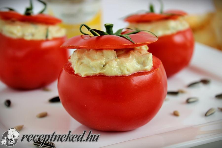Tojásos-napraforgókrémmel töltött paradicsom recept
