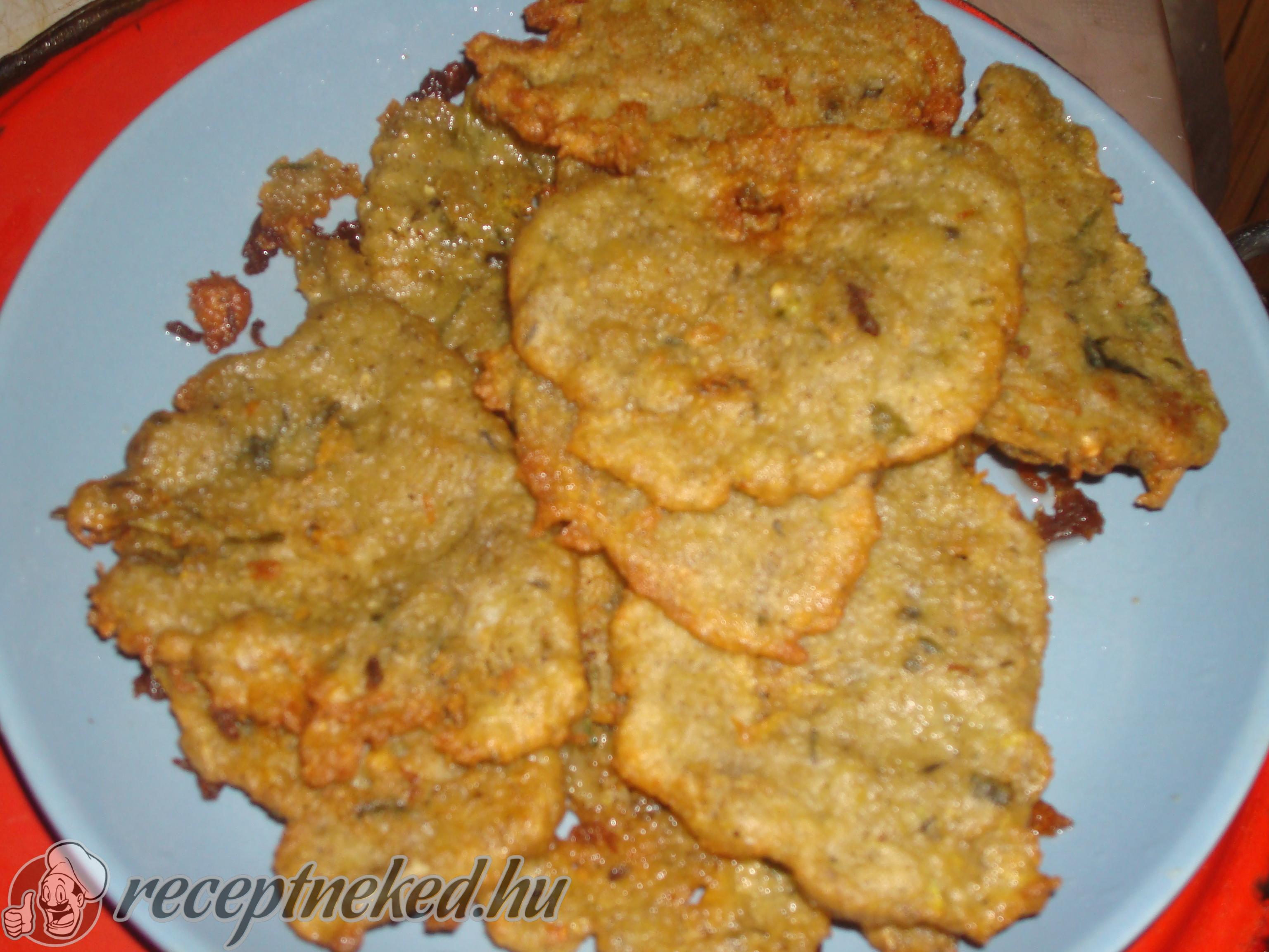 A keverékből kézzel kis adagokat veszünk ki, a tenyerünk között kilapítjuk, és forró olajba tesszük. Mindkét oldalát aranybarnára sütjük. Papírtörlőre szedve leitatjuk róla a felesleges olajat. Melegen, tejföllel vagy salátával kínáljuk.