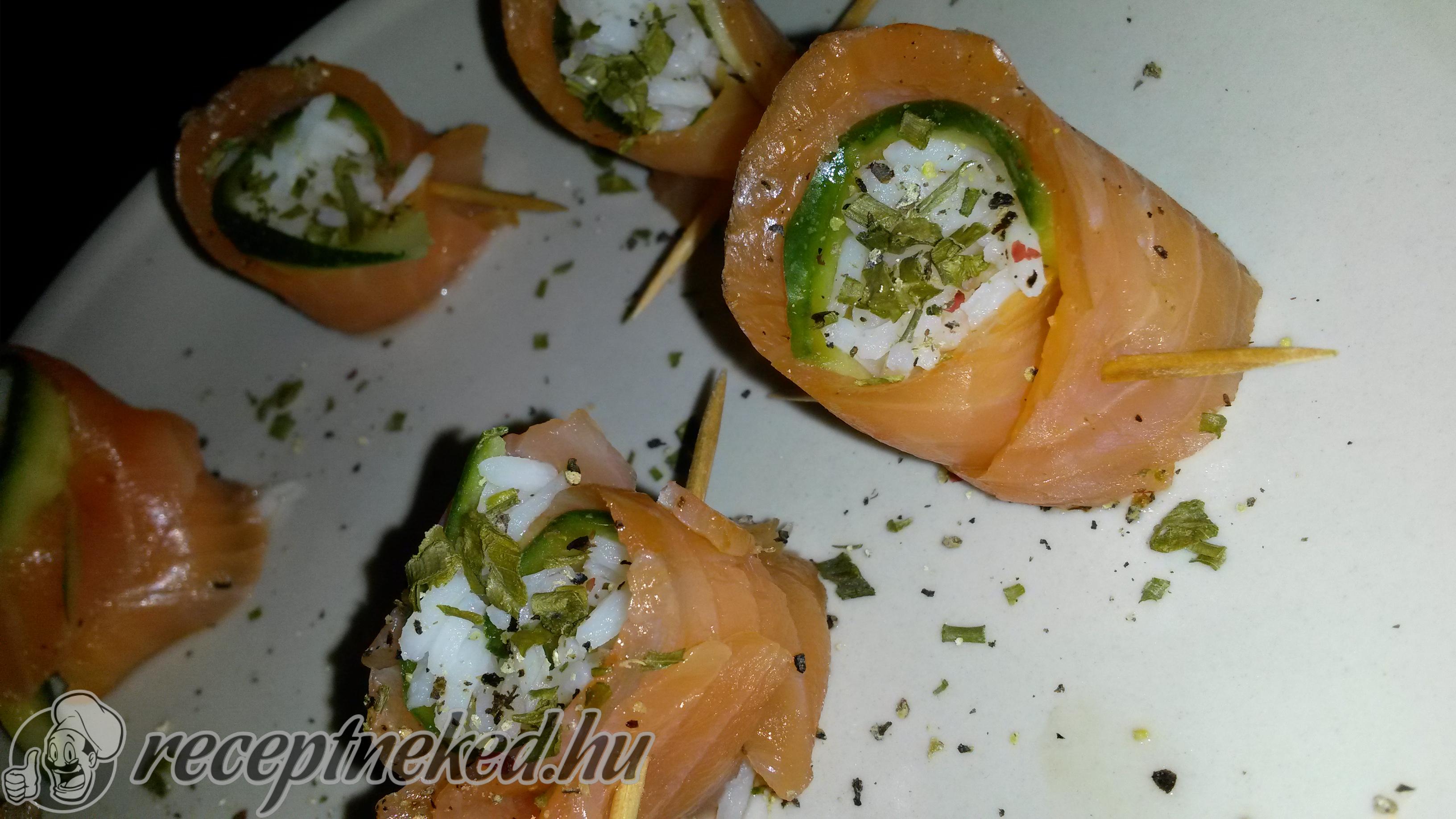 Összetűzzük egy-egy fogpiszkálóval vagy összekötjük egy-egy zöldhagymaszárral.
