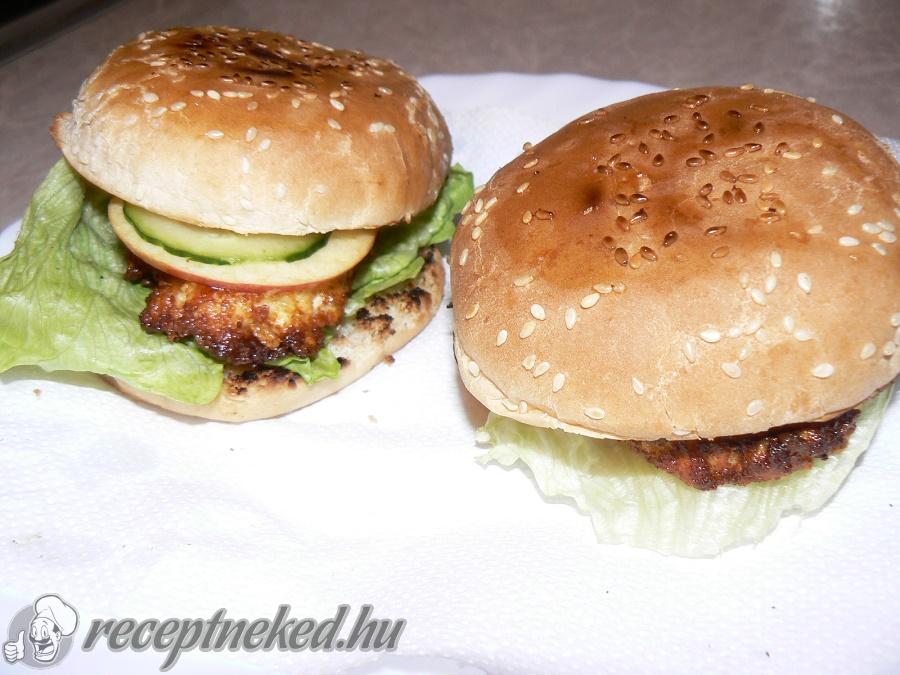 [box style=”info”]A vegetáriánus hamburgert, házi sajtból készítem. A gomolya sajt , kellemes , süthető. Már készítésnél is fűszereket keverek bele.