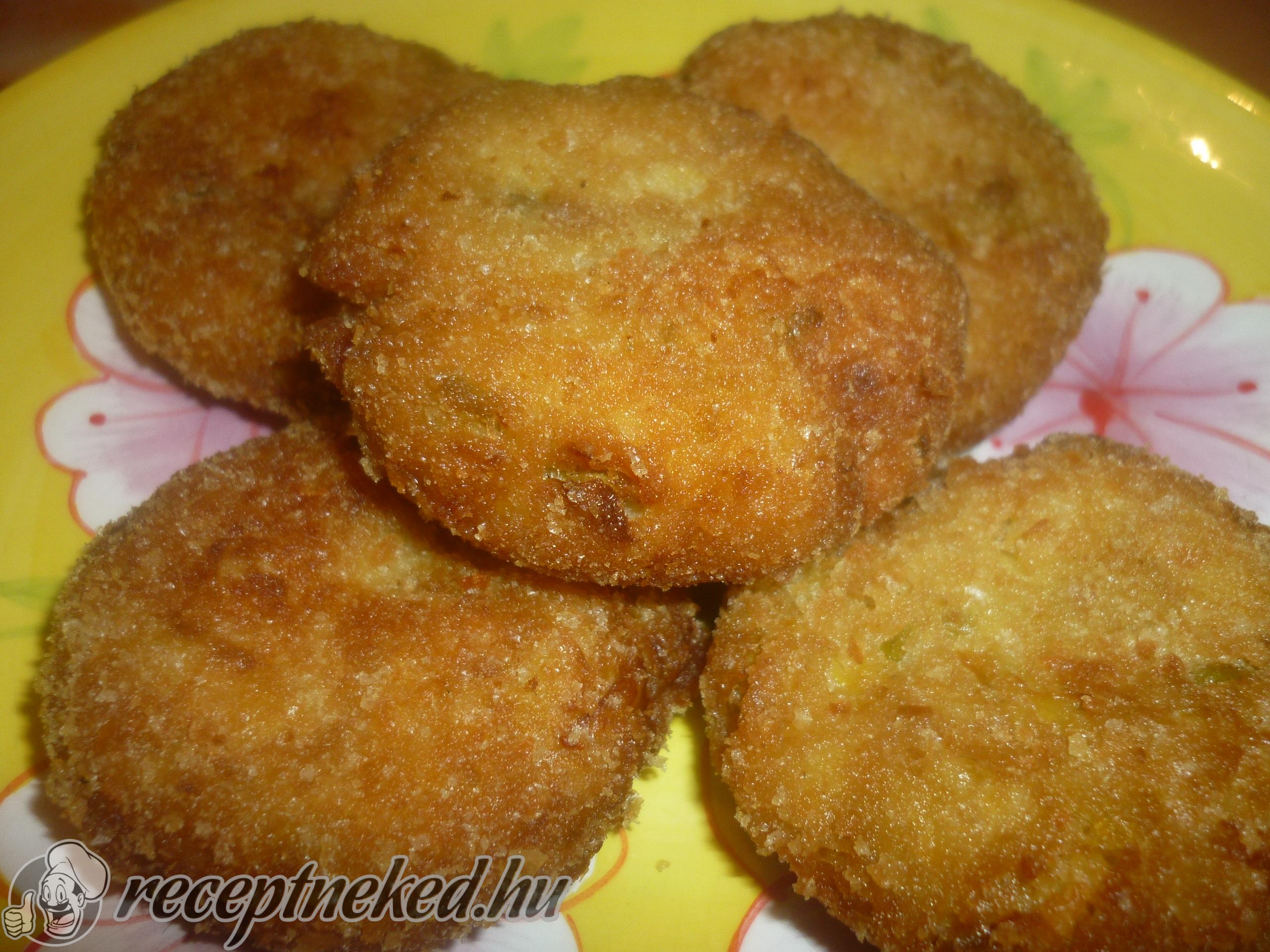 A masszából pogácsákat formázunk, mindet zsemlemorzsába forgatjuk, majd forró olajban, közepes lángon aranybarnára sütjük. Papírtörlőn lecsepegtetjük a felesleges olajat.
