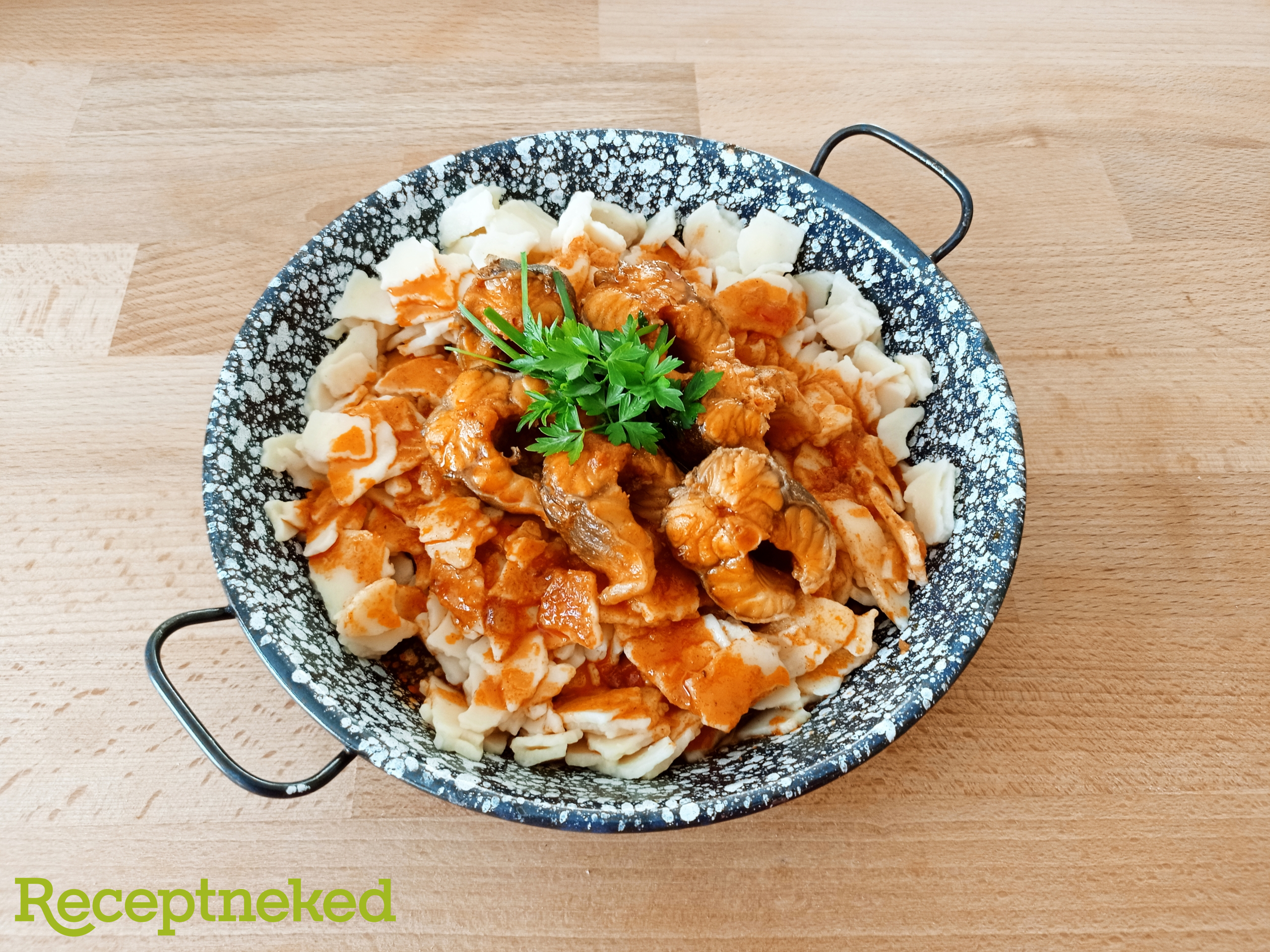 A konyhakészre előkészített angolnát daraboljuk fel, majd sózzuk le és hagyjuk állni a sóban 1-2 órát, utána mossuk le a sót a halról.Süssük meg ki a feldarabolt szalonnát, majd a hagymát dinszteljük meg a szalonna zsírján. Ezután adjuk hozzá a kisebb darabokra vágott paprikát, paradicsomot. Ezután keverjük el benne a fűszerpaprikát és hal fűszerkeveréket. Öntsük fel kb 2 liter vízzel, majd alacsony lángon főzzük kb 1 órát az alaplevet.Amikor a hagyma, a paprika és a paradicsom is szétfőtt, készen van az alaplevünk. Tegyük bele a halhúst és 40-50 perc alatt főzzük készre.Kóstoljuk meg és ha kell, akkor még ízesítsük sóval, borssal tálalás előtt.Ízlés szerint tálalhatjuk bármilyen körettel. Csipetke illik hozzá a legjobban.