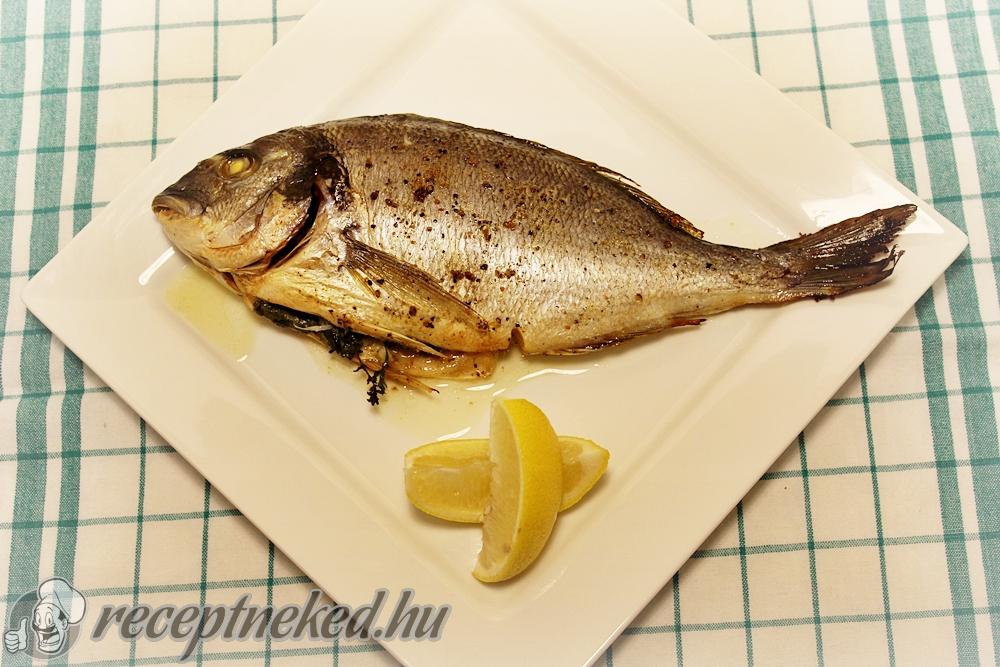 Tálalás előtt helyezzük a halat tányérra és citromszelettel tálaljuk. Ízlés szerint salátát vagy más köretet is kínálhatunk hozzá.