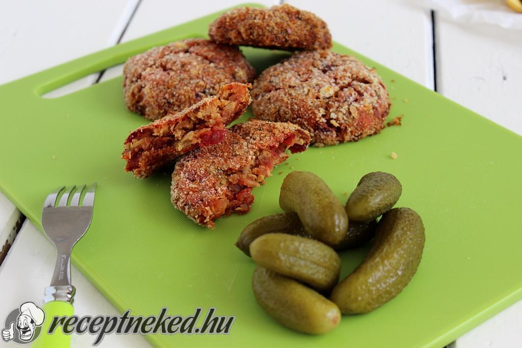 Tálaláskor ízlés szerint salátát kínáljunk a halpogácsákhoz. Én csemege uborkával kínáltam.