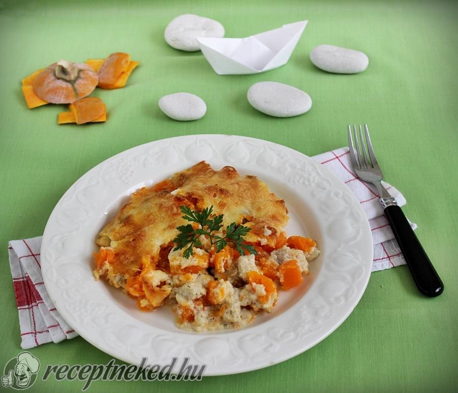 Egy tálba tegyük bele a halat, és adjuk hozzá a kihűlt sütőtököt, majd öntsük rá a maradék mártást. Ezután óvatosan forgassuk össze, majd öntsük a formában lévő mártás tetejére.