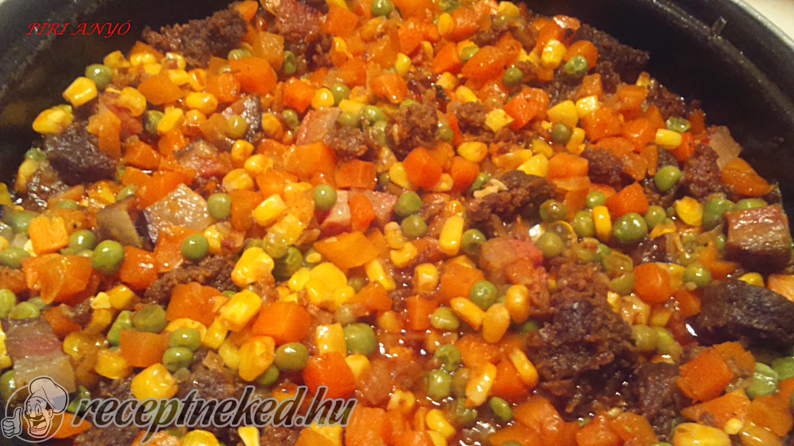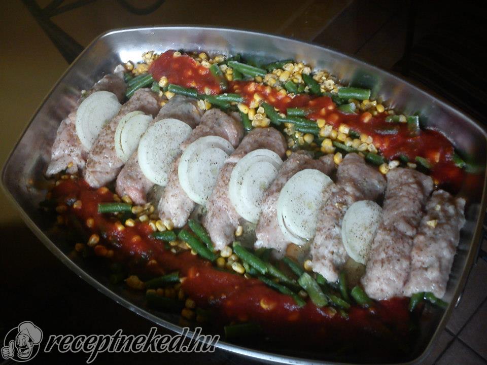 Veszünk egy nagy tálat, amibe beleszórjuk a salátát, a lilahagymát, a kaprot, a koktélparadicsomot és az egészet összekeverjük, majd hozzácsorgatjuk a majonézet.