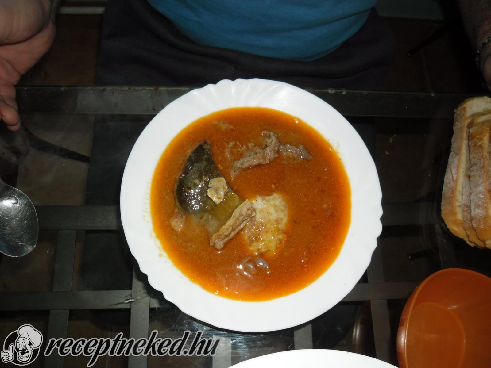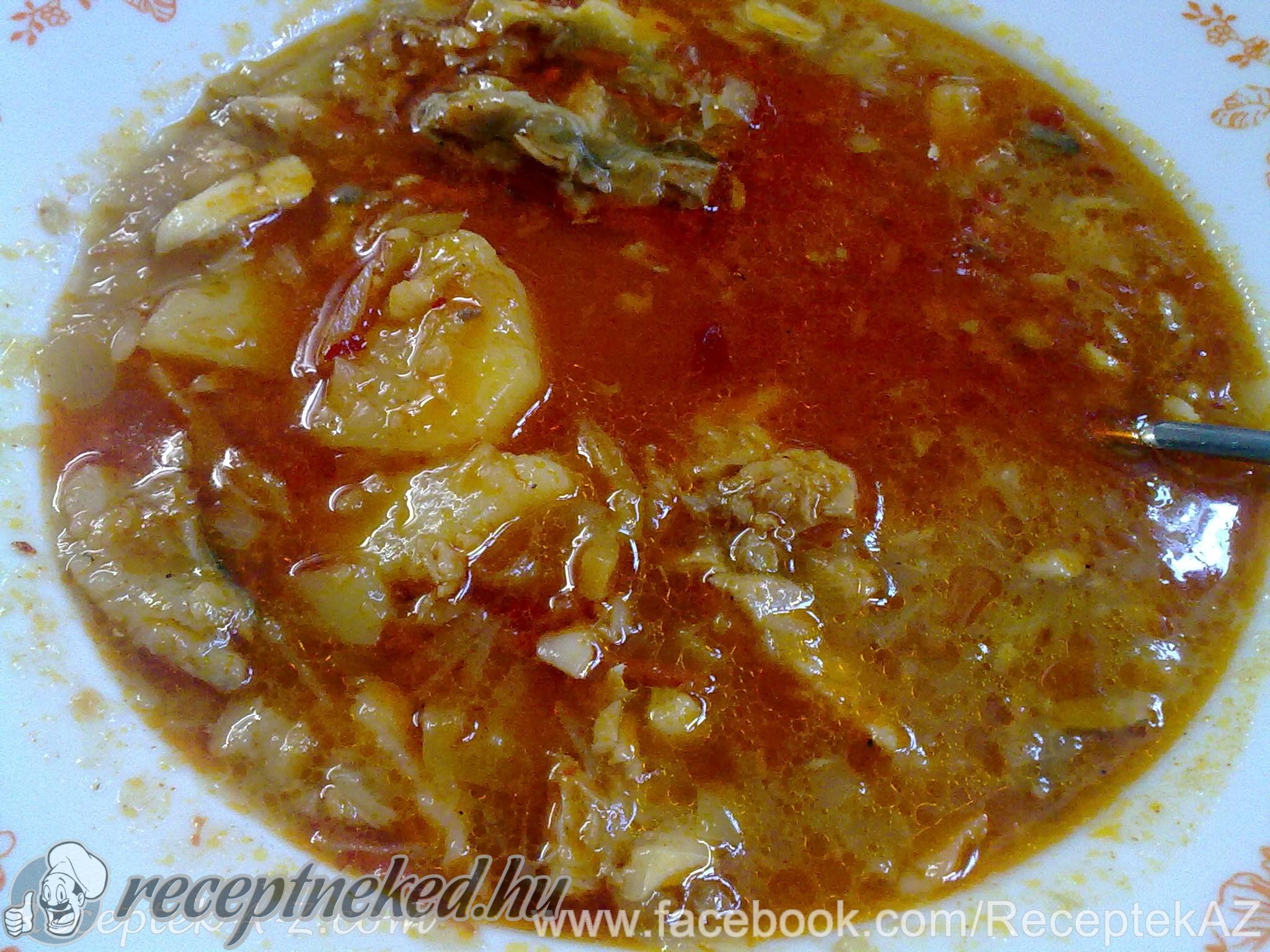 Amikor már elforrta a habját, akkor beleszórjuk a pirospaprikát. 15-20 perc főzés után beletesszük a belsőségeket, ikrát és a csípős paprikát, majd ismét feljebb vesszük alatta a lángot.