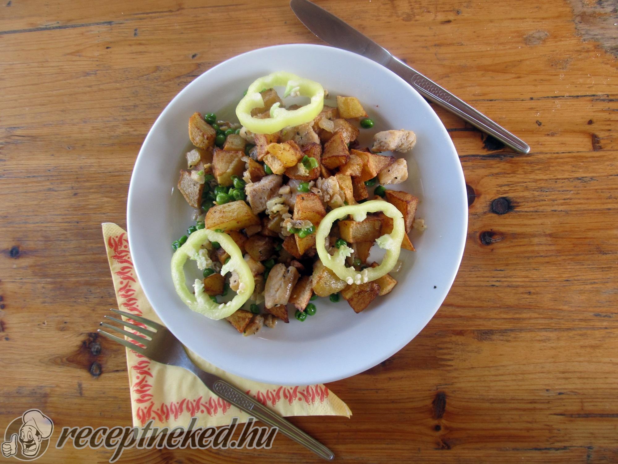 Végül a húsos ragut és a sült burgonyát összekeverjük és tálalhatjuk is.