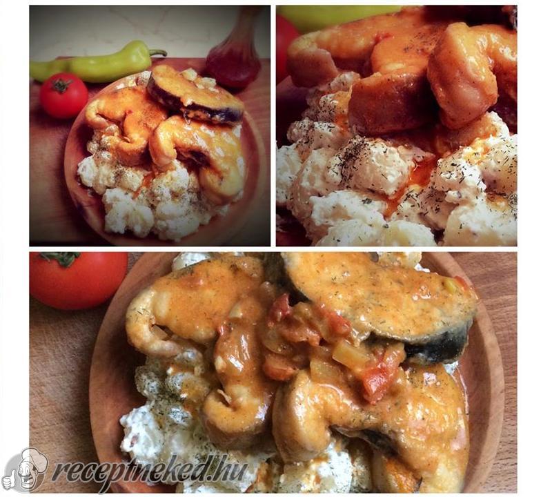 [box style=”info”]A halnak nem kell sok idő a puhuláshoz, vigyázni kell, hogy egyben maradjanak a halszeletek. Juhtúróval és tejföllel kevert nokedlivel, gnocchival (krumpli galuska), vagy főtt tésztával tálaljuk. A juhtúró, savanyú, sós gomolya, vagy márványsajt is jót tesz az összhatásnak![/box]