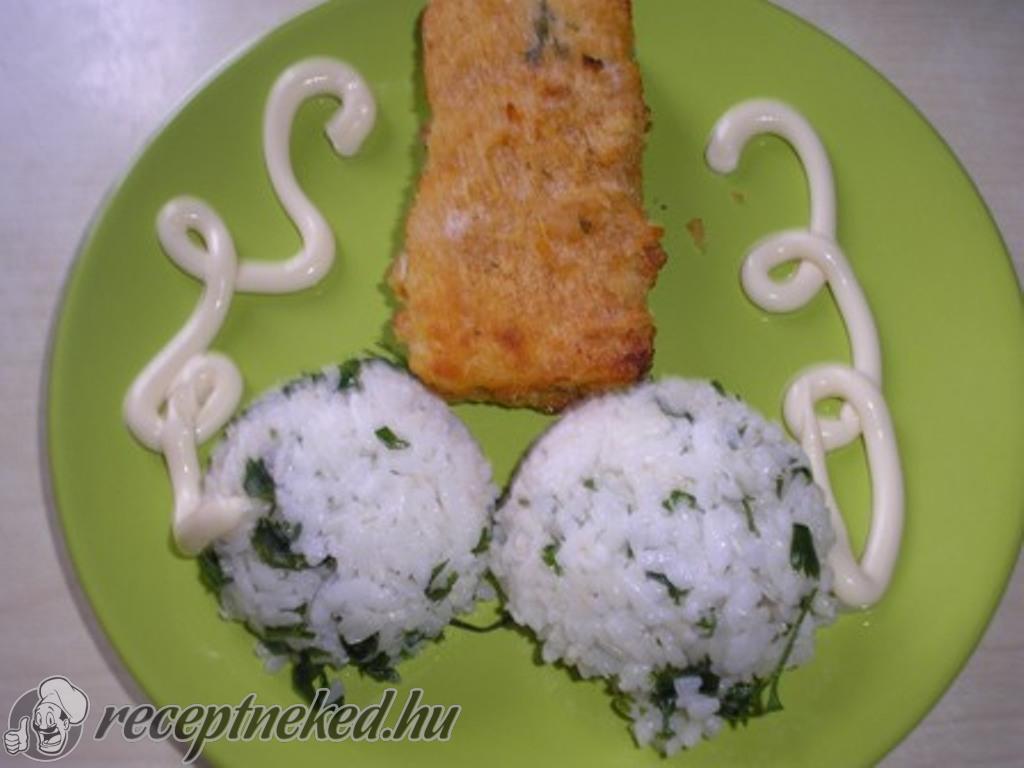 A halat, ami ez esetben 4 db, megsózzuk. Felvert tojásba, majd lisztbe, újra tojásba, végül a fűszeres zsemlemorzsába forgatjuk. Tepsibe, alufóliára helyezzünk őket, és meglocsoljuk olívaolajjal.